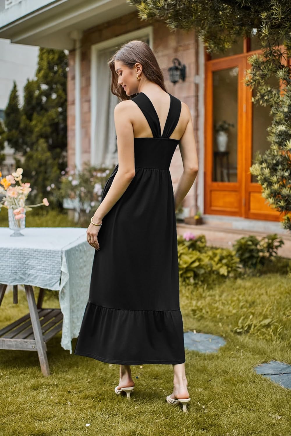 GRACE KARIN 2024 Women's Criss Cross Halterneck Sleeveless Summer Flowy A Line Maxi Dress(Black)