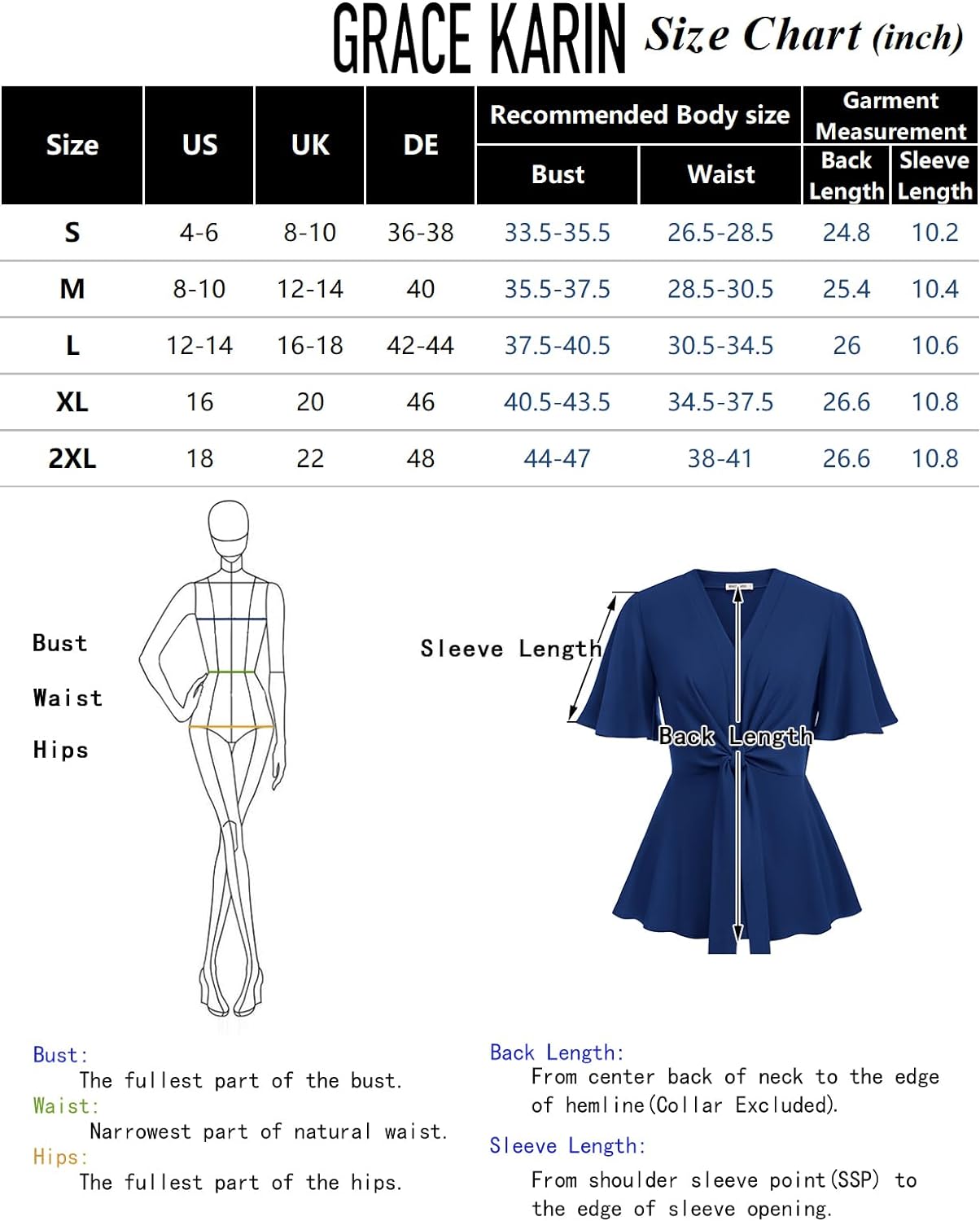 GRACE KARIN 2024 Womens Elegant Peplum Tops V Neck Tie Front Short Bell Sleeve Shirts Tops BlouseBrownl43