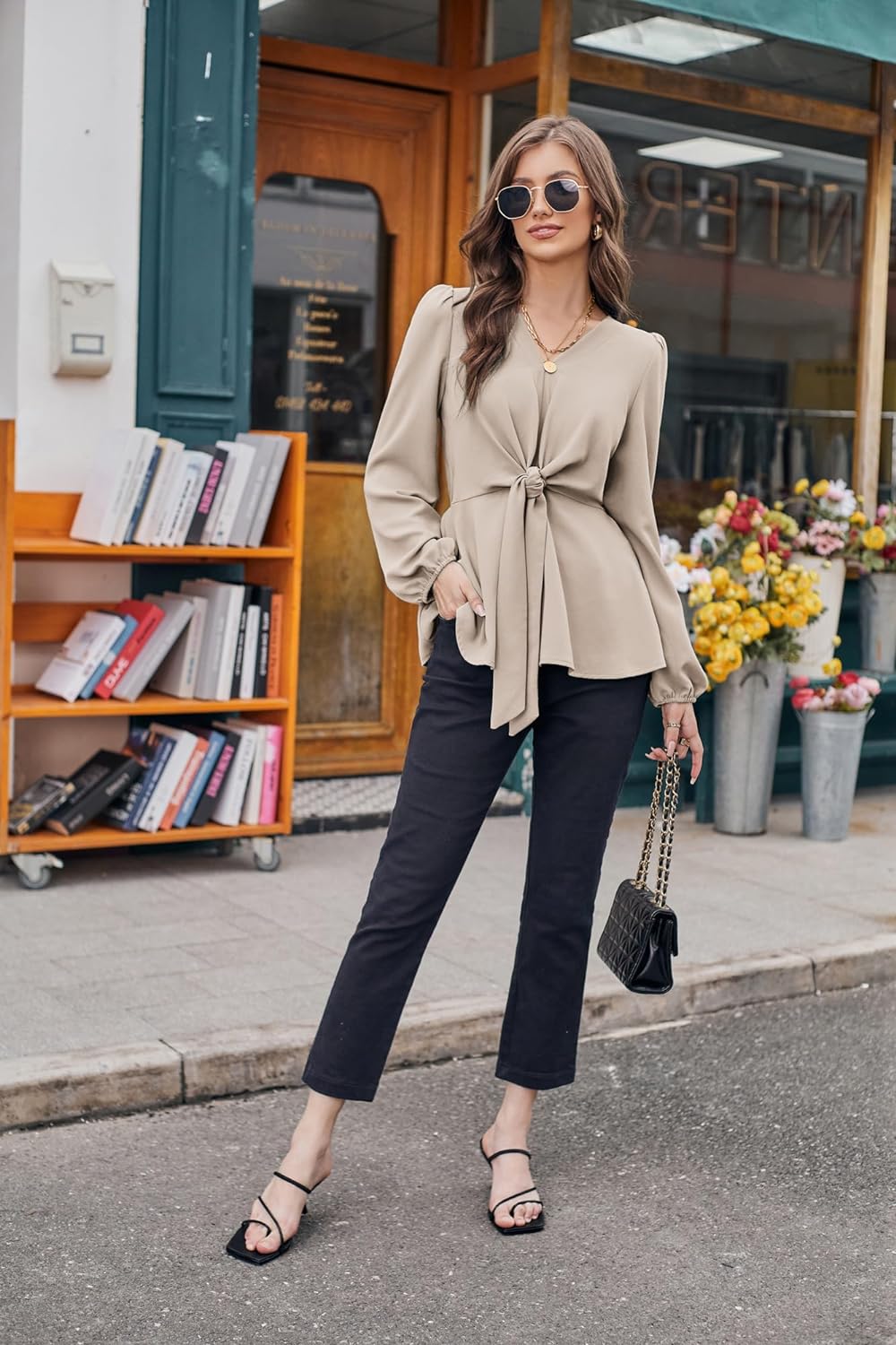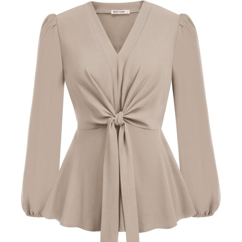 Get a free gift with your purchase of GRACE KARIN 2024 Women’s Elegant Peplum Tops V Neck Tie Front Short Bell Sleeve Shirts Tops Blouse. Limited quantities available!
