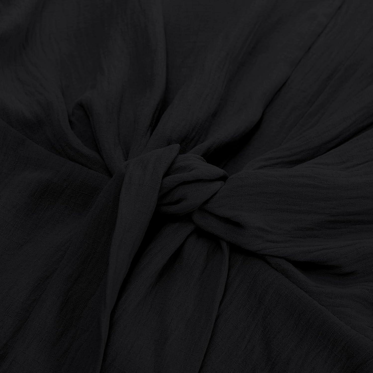 imageGRACE KARIN 2024 Womens Elegant V Neck Peplum Tops Tie Front Short Bell Sleeve Shirts Tops BlouseCrinkly Black