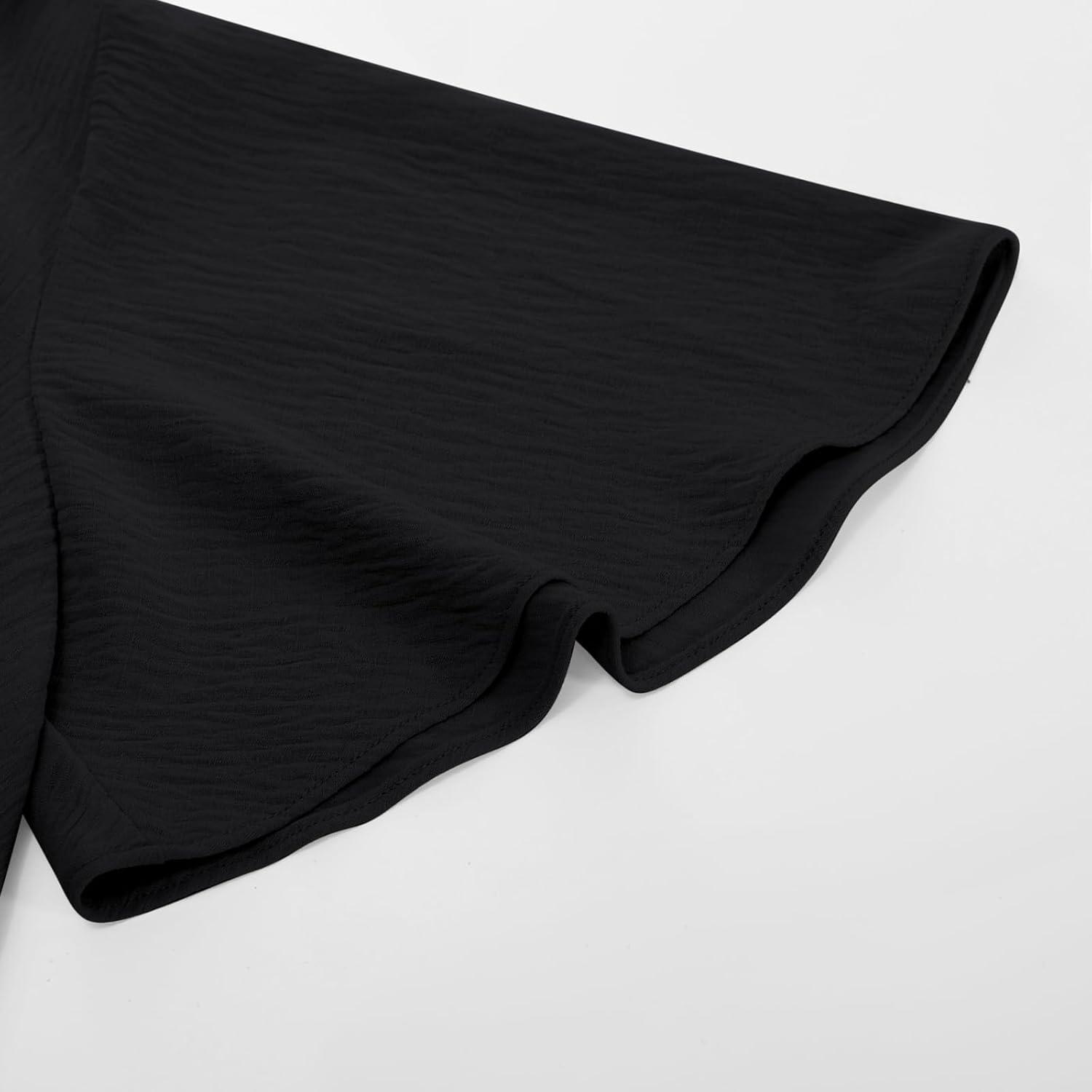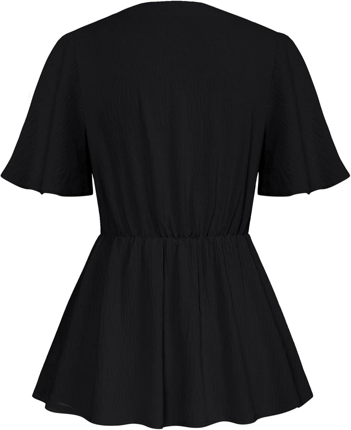 GRACE KARIN 2024 Women’s Elegant V Neck Peplum Tops Tie Front Short Bell Sleeve Shirts Tops Blouse(Crinkly Black)