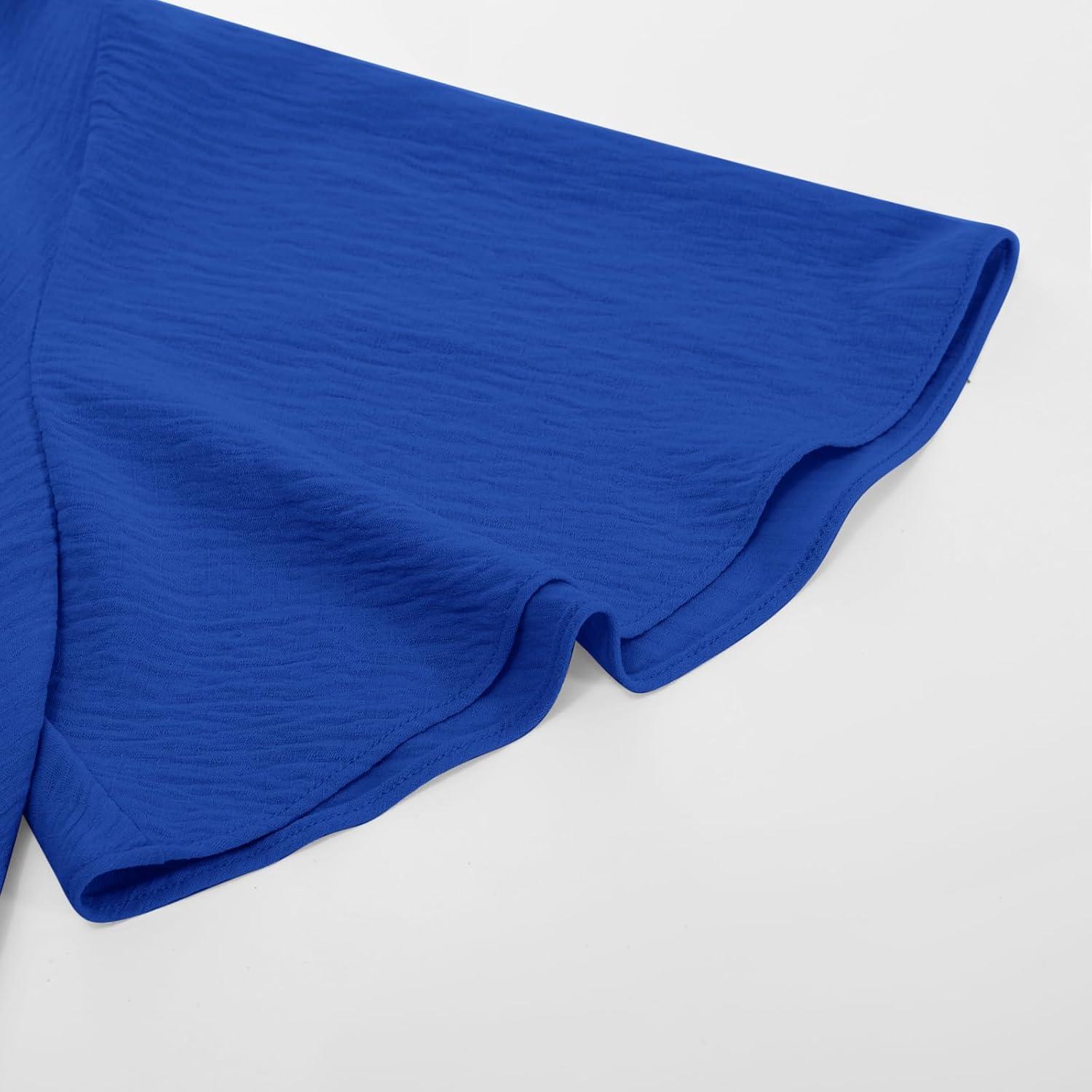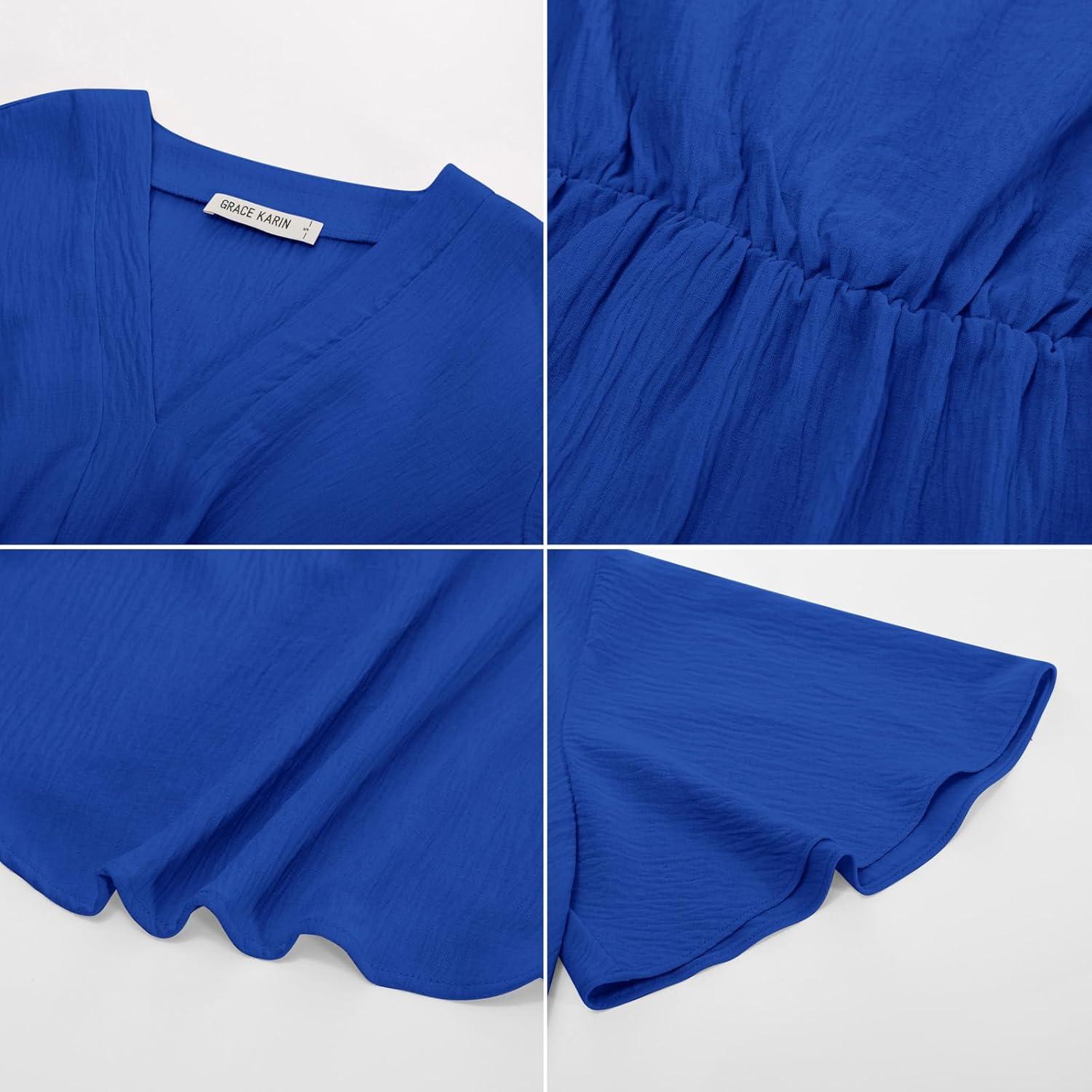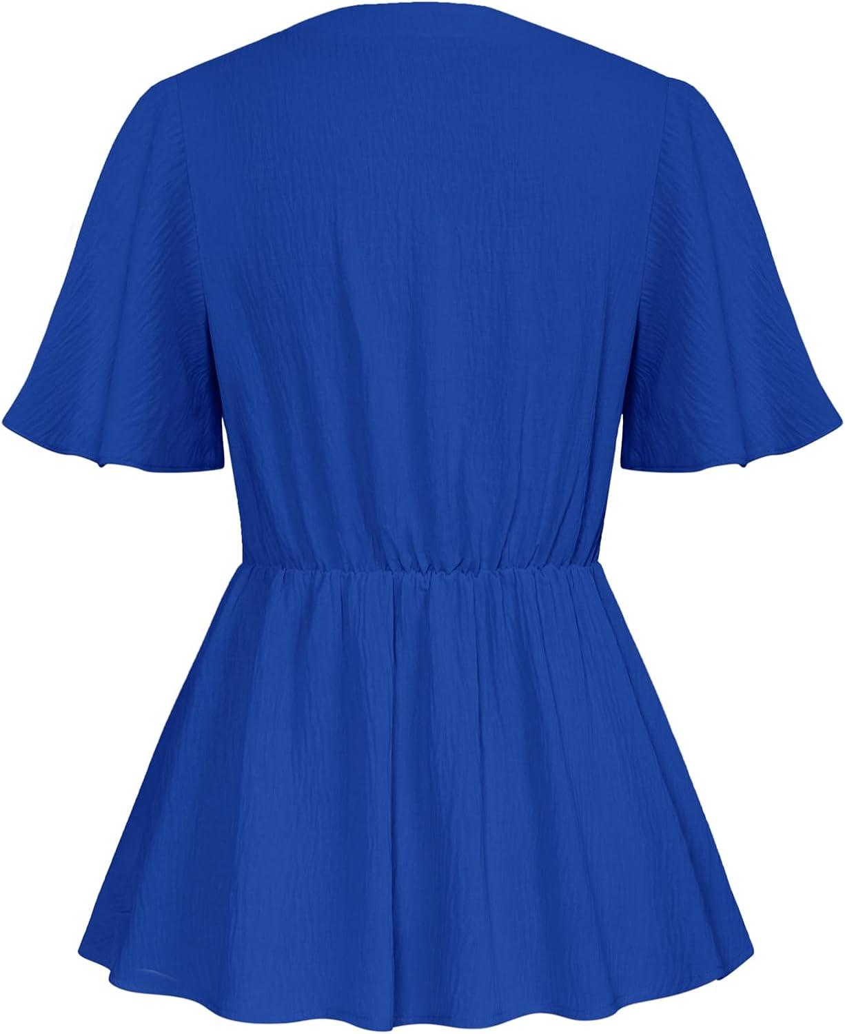 GRACE KARIN 2024 Women’s Elegant V Neck Peplum Tops Tie Front Short Bell Sleeve Shirts Tops Blouse(Crinkly Royal Blue)