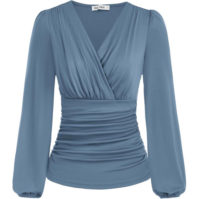 Be the first to review “GRACE KARIN 2024 Womens Tops Elegant Wrap Blouse V Neck Work Shirts Fall Fashion Long Sleeve Dressy Casual Ruched Top(Haze Blue)” Cancel reply