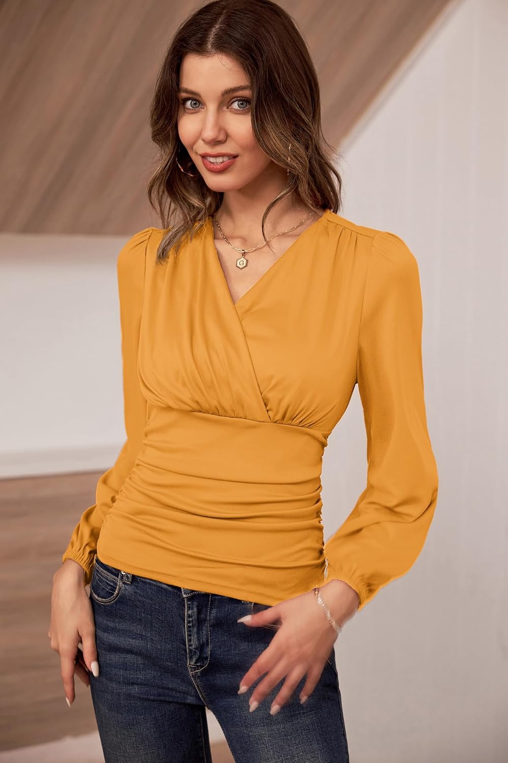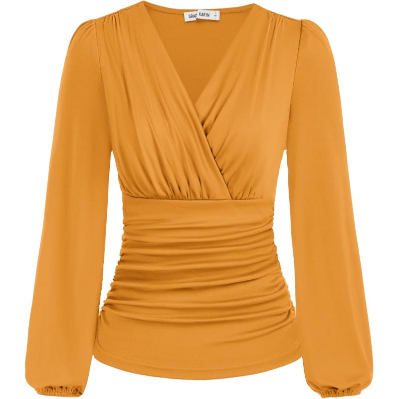 Be the first to review “GRACE KARIN 2024 Womens Tops Elegant Wrap Blouse V Neck Work Shirts Fall Fashion Long Sleeve Dressy Casual Ruched Top(Mustard Yellow)” Cancel reply