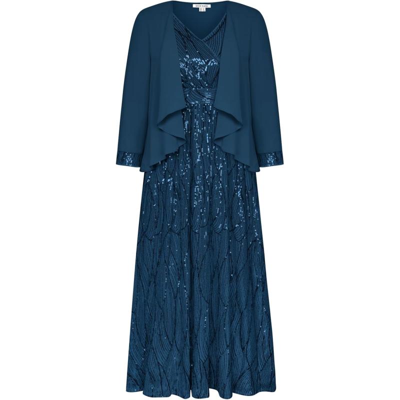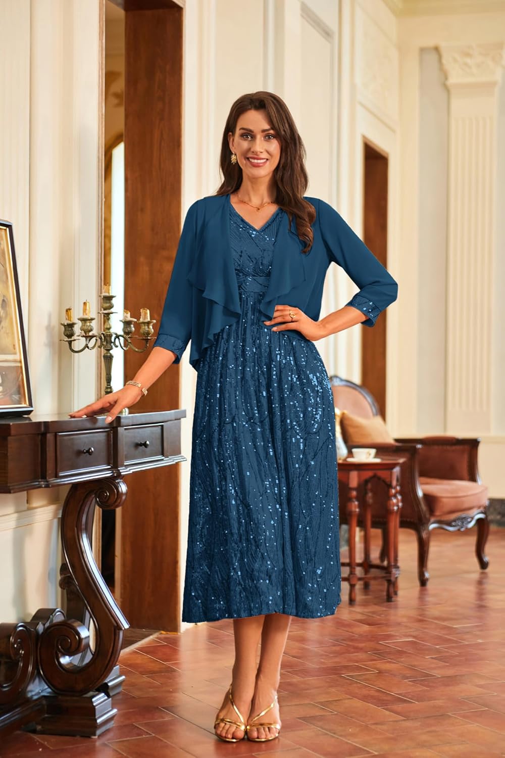 GRACE KARIN 2024 Women's Two Piece Sequin Dress with Jacket Mother of The Bride Dresses Homecoming Wedding Guest Dresses(Blue Green)