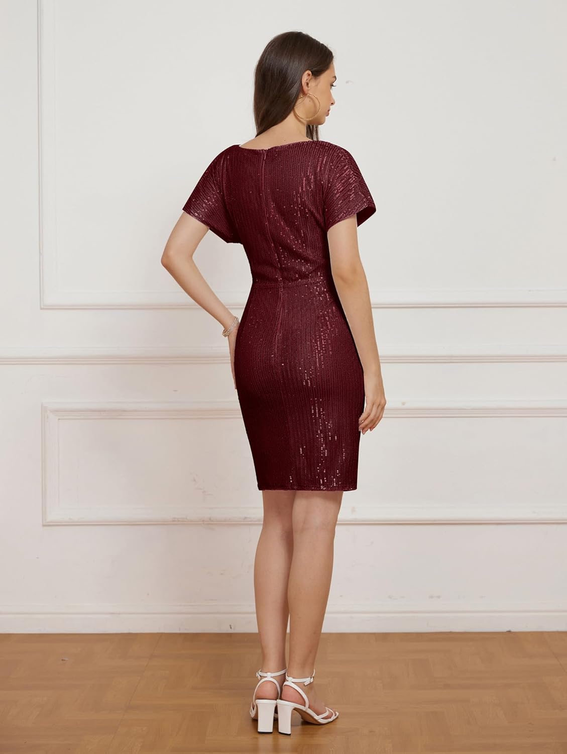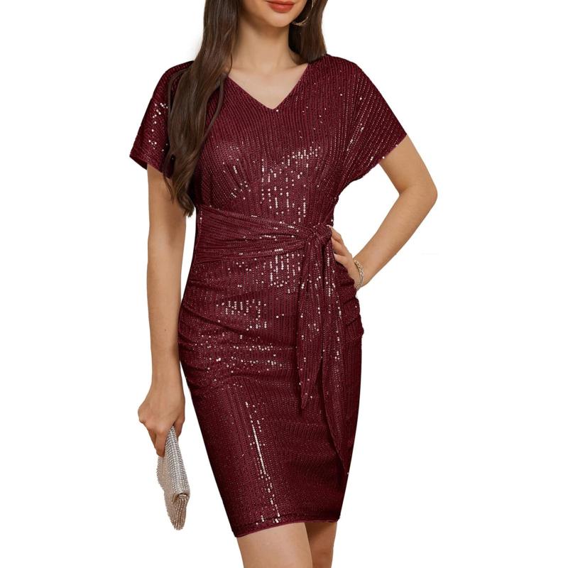 Be the first to review “GRACE KARIN 2024 Women’s V Neck Ruched Sequin Dress Short Sleeve Tie Midi Cocktail Party Bodycon Dresses(Wine Red(sequin))” Cancel reply