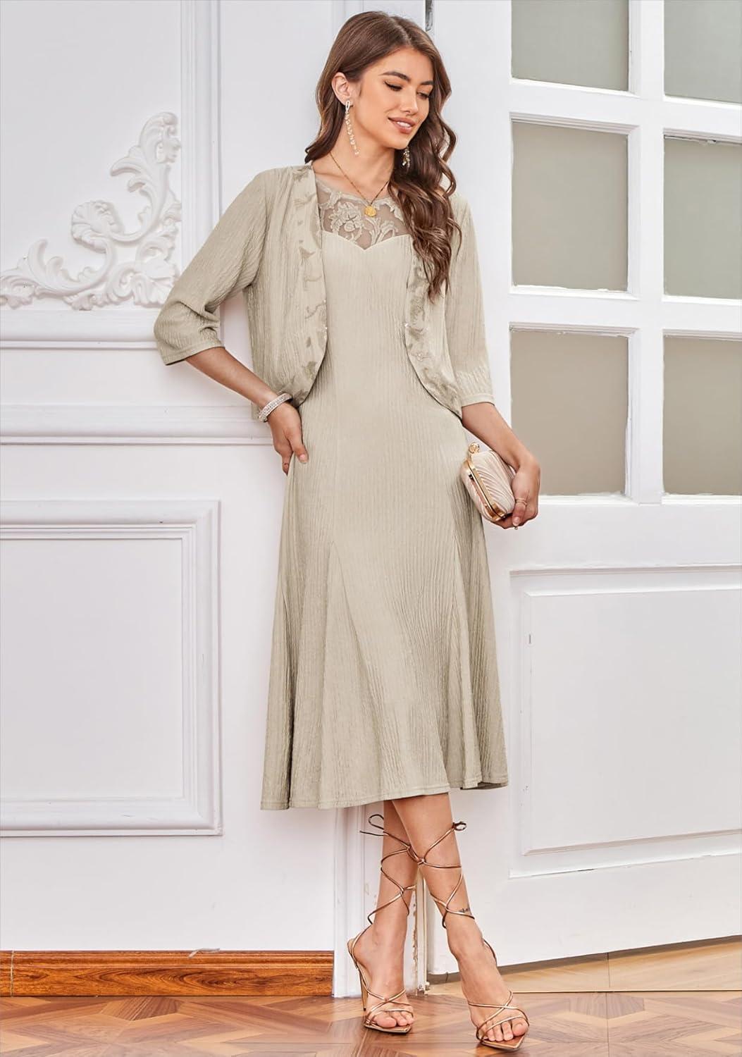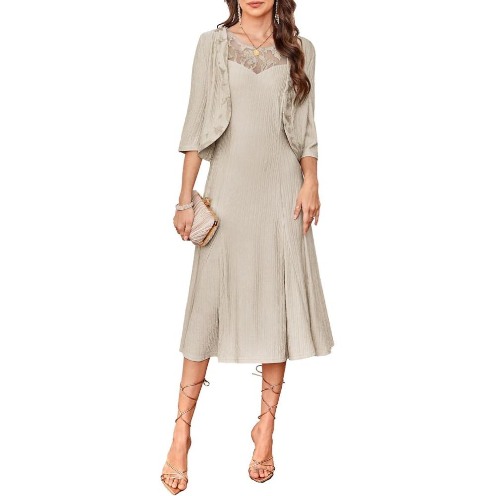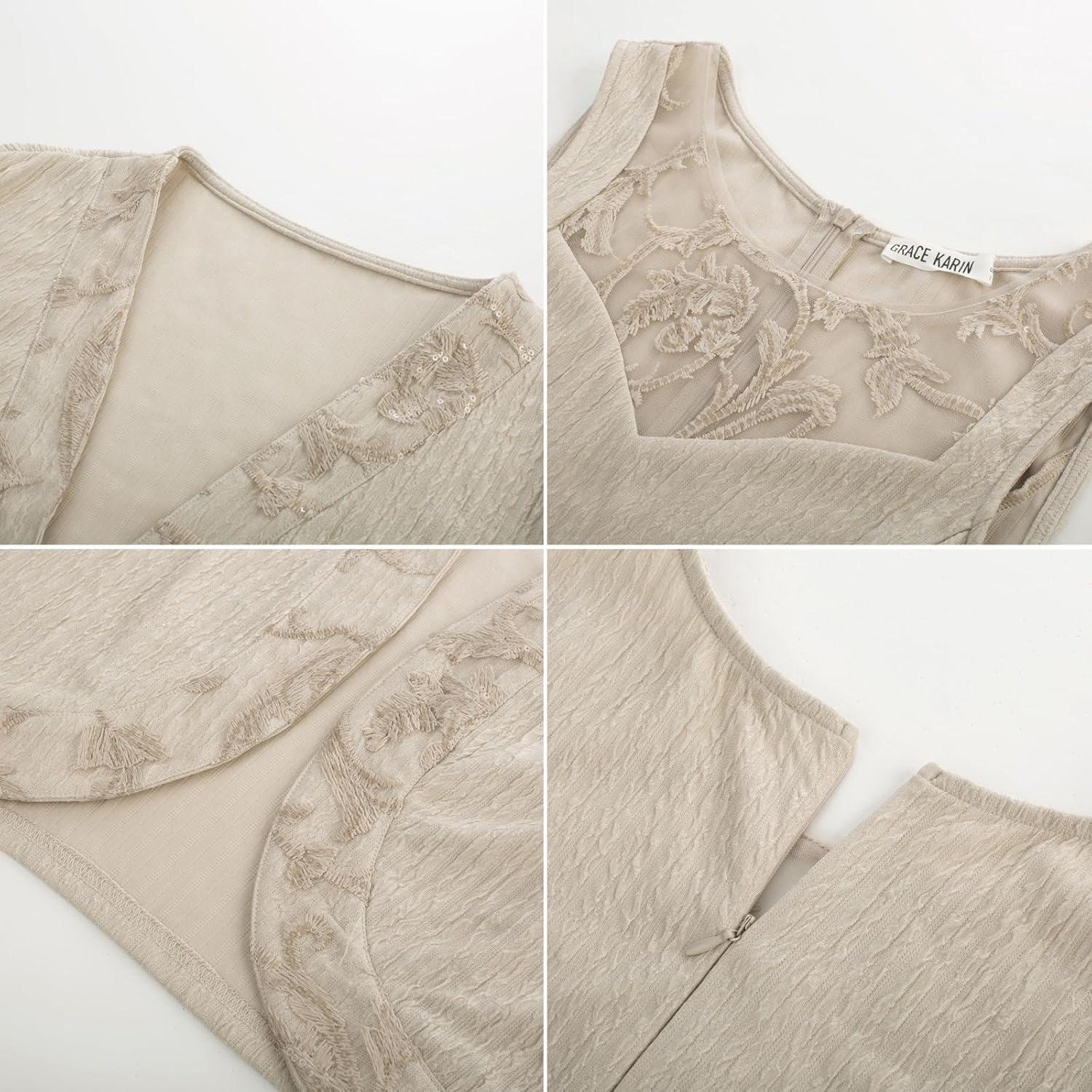 Don’t miss out on our limited-time offer: get a free {accessory} with your purchase of GRACE KARIN 2025 Mother of The Bride Dress with Jacket Women Stretchy Lace 2 Piece Wedding Guest Dresses(Apricot).