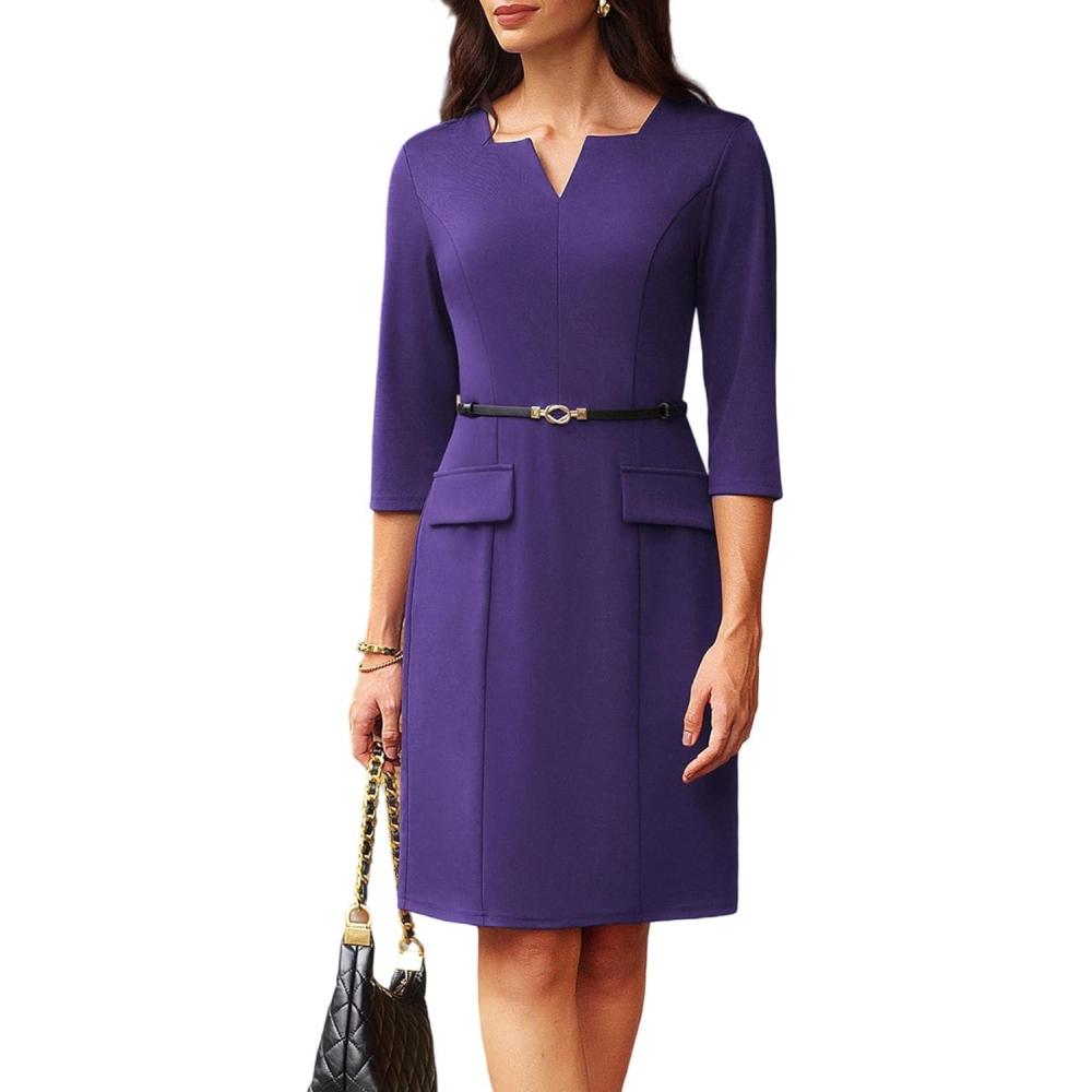 GRACE KARIN 2025 Women 3/4 Sleeve Business Work Dress V Neck Bodycon Sheath Dress with Belt(Purple)