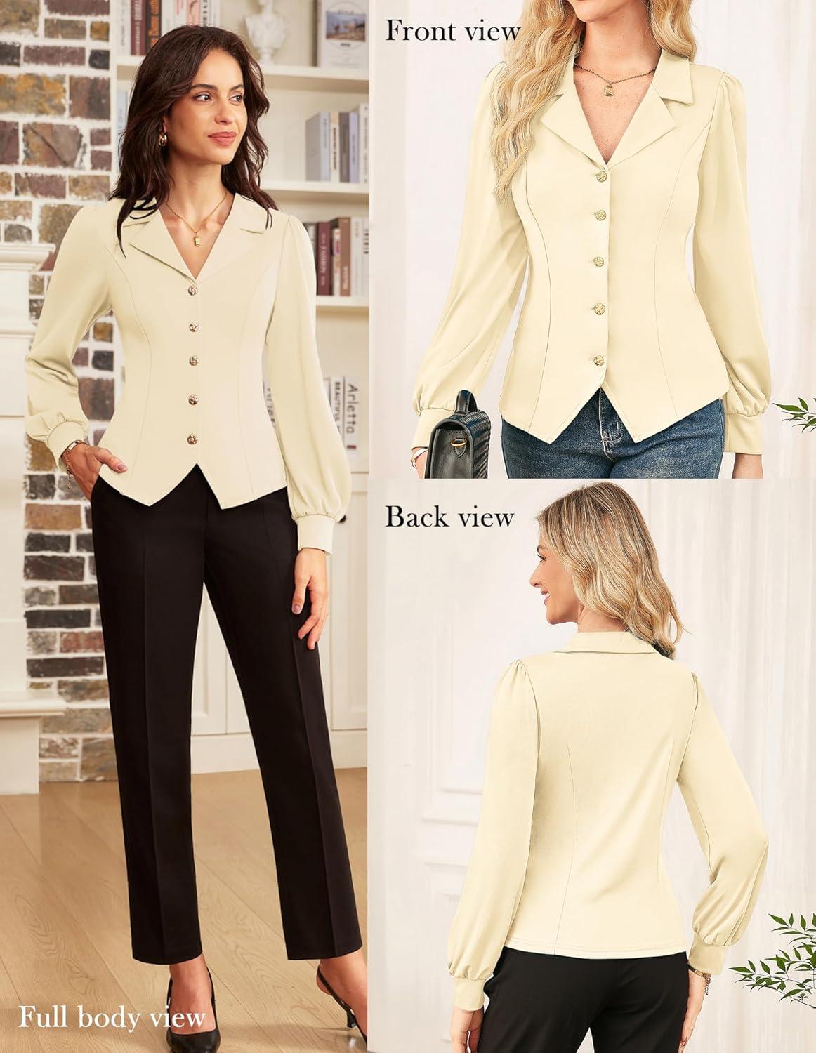 GRACE KARIN 2025 Women Fall Work Office Blouses,Long Sleeve Trendy Work Tops,V Neck Button Down Slim Shirts(Apricot)