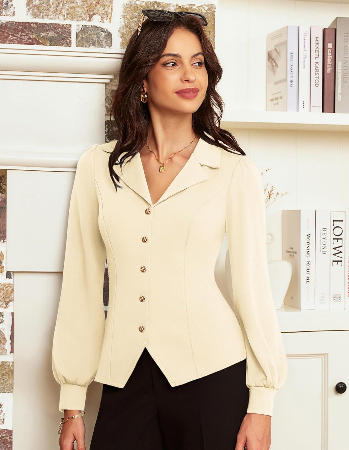 imageGRACE KARIN 2025 Women Fall Work Office BlousesLong Sleeve Trendy Work TopsV Neck Button Down Slim ShirtsApricot