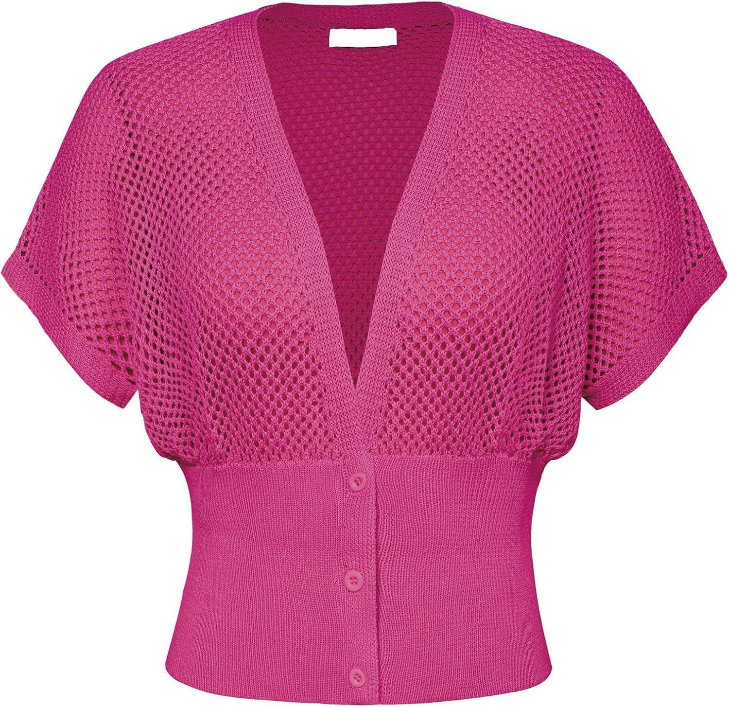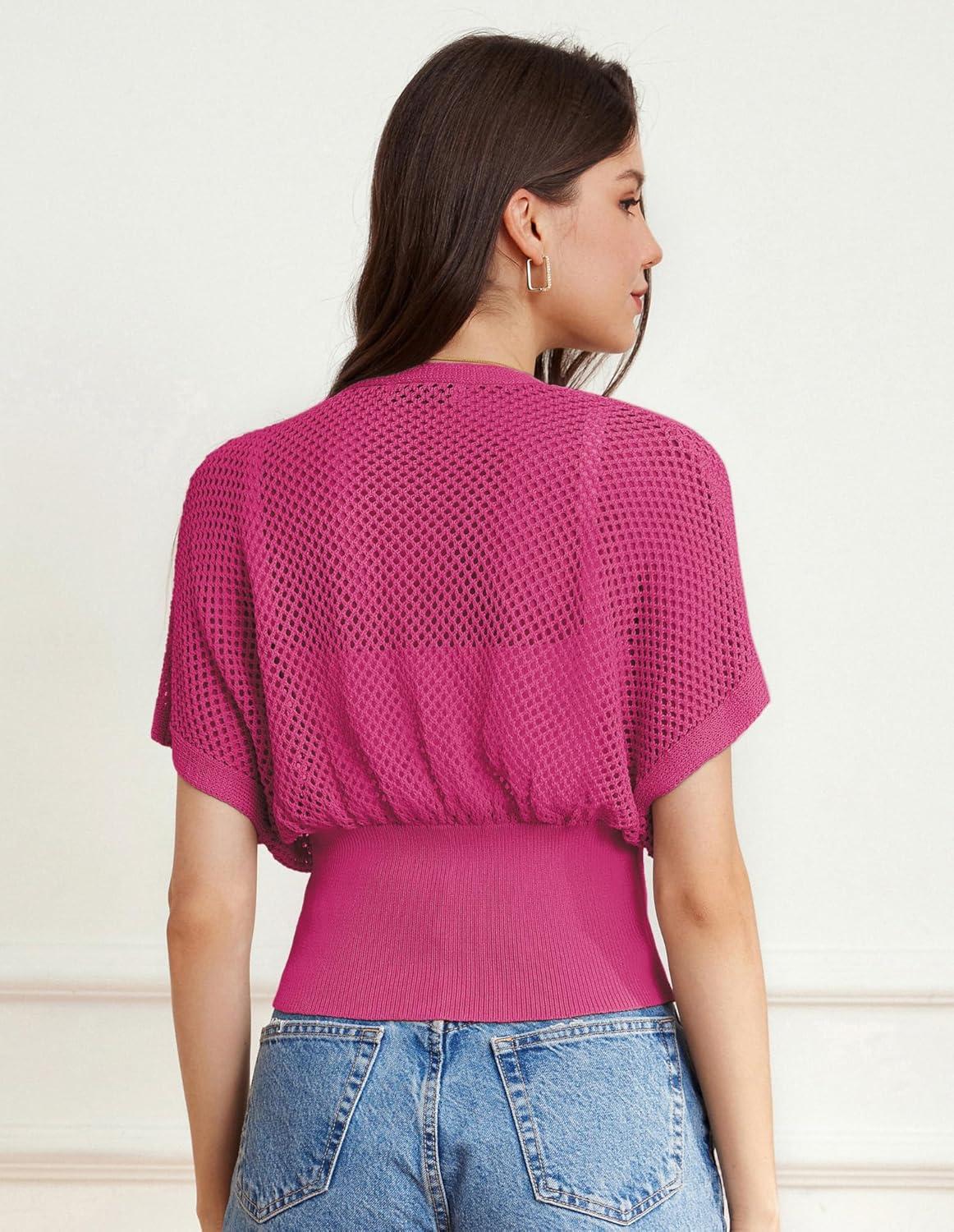 GRACE KARIN 2025 Women Short Sleeve Crochet Cardigan Summer Draped V-Neck Bolero Shrug Sweater Hollow Out Beach Cover Up(Hot Pink)