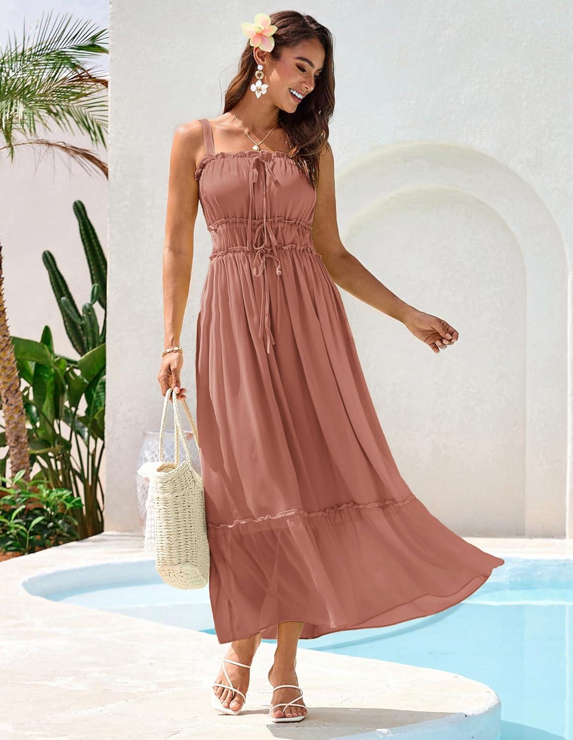 Be the first to review “GRACE KARIN 2025 Women’s Casual Spaghetti Straps Square Neck Maxi Dress Ruffle Flowy A Line Smocked Dress with Pockets(Light Red Brown)” Cancel reply