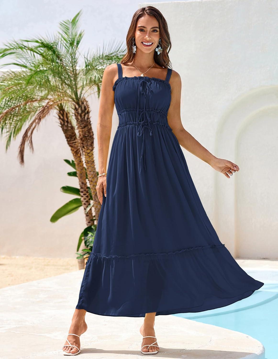 Get up to 50% off on GRACE KARIN 2025 Women’s Casual Spaghetti Straps Square Neck Maxi Dress Ruffle Flowy A Line Smocked Dress with Pockets(Navy Blue) styles during our spring sale event.