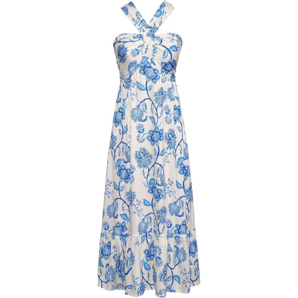 Don’t miss out on our limited-time offer: buy GRACE KARIN 2025 Women’s Criss Cross Halterneck Sleeveless Summer Floral Print Flowy A Line Maxi Dress(Beige Blue), get a free {accessory}!