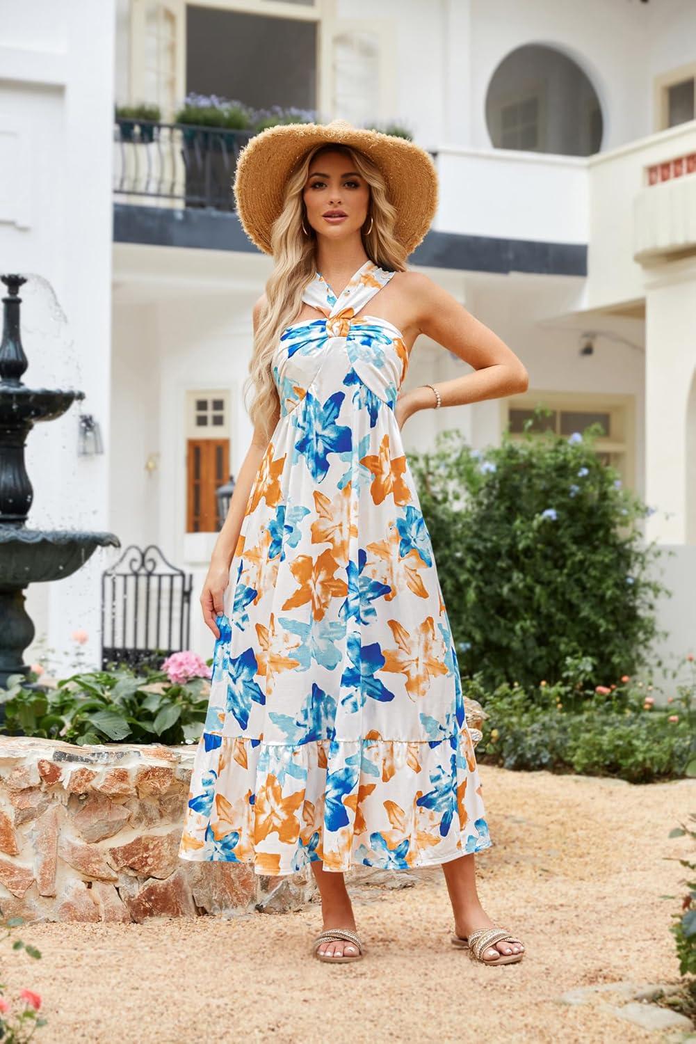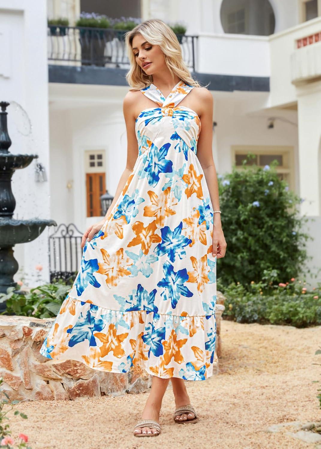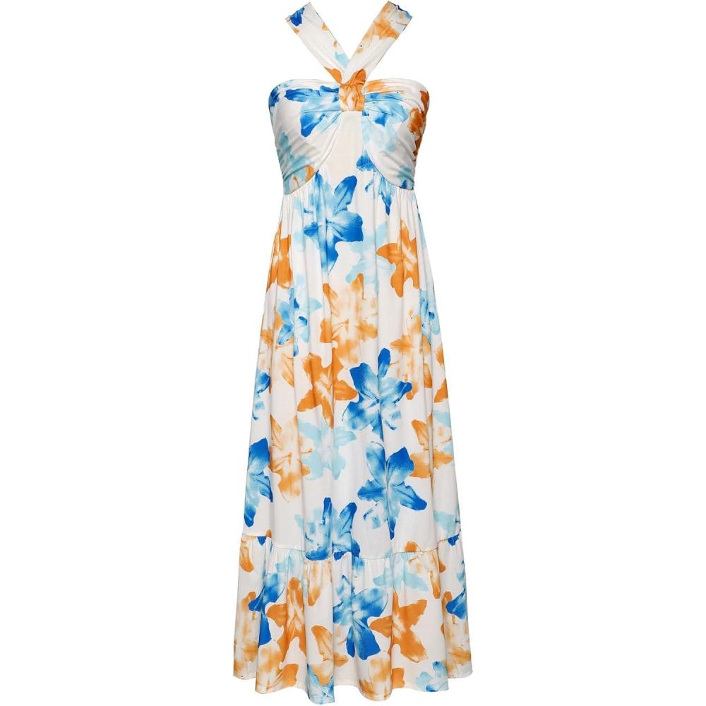 Be the first to review “GRACE KARIN 2025 Women’s Criss Cross Halterneck Sleeveless Summer Floral Print Flowy A Line Maxi Dress(Blue Brown)” Cancel reply