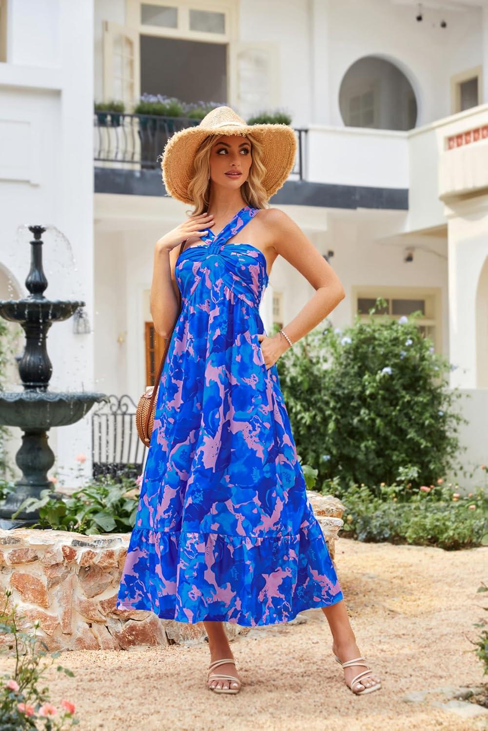 Get up to 60% off on GRACE KARIN 2025 Women’s Criss Cross Halterneck Sleeveless Summer Floral Print Flowy A Line Maxi Dress(Blue Rush) styles during our winter sale event.