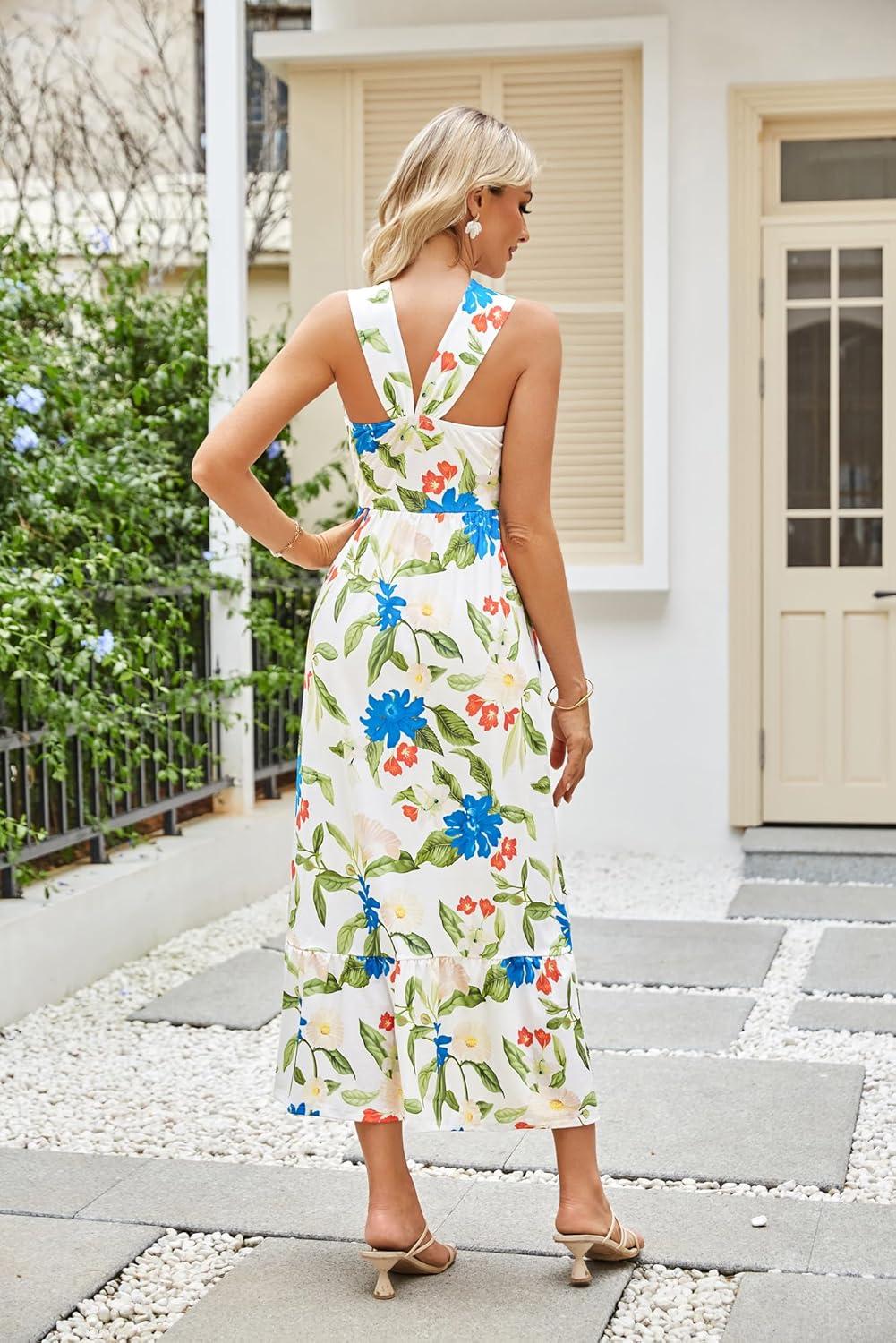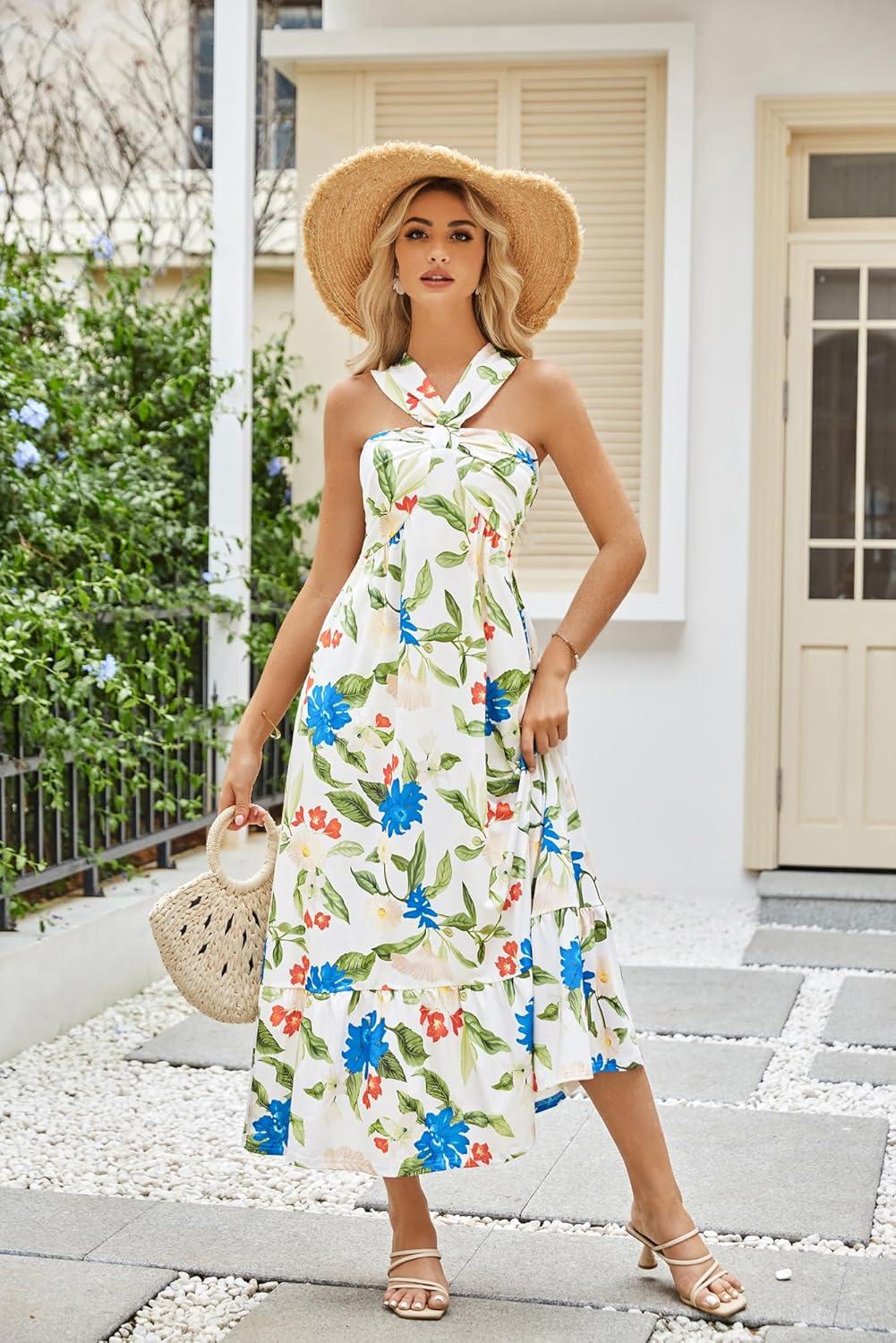 Be the first to review “GRACE KARIN 2025 Women’s Criss Cross Halterneck Sleeveless Summer Floral Print Flowy A Line Maxi Dress(Floral White 2)” Cancel reply