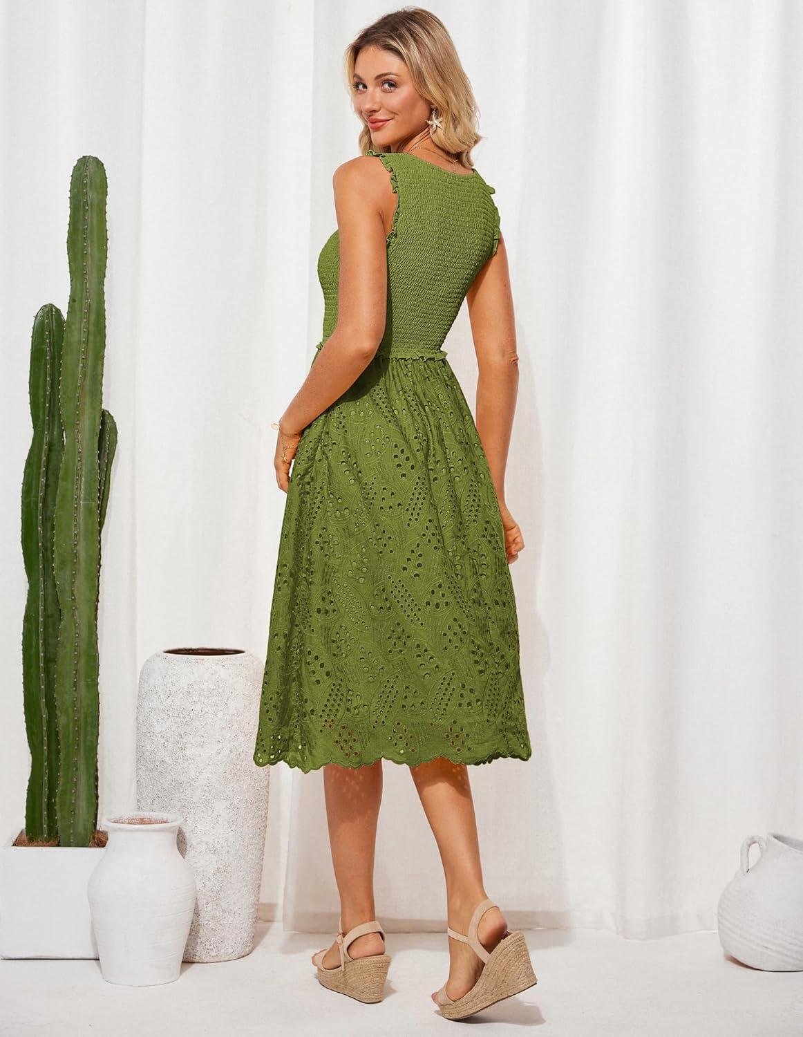 Be the first to review “GRACE KARIN 2025 Womens Dress Summer Sleeveless Casual Vacation Embroidered Midi Dress with Pockets(Matcha Green)” Cancel reply