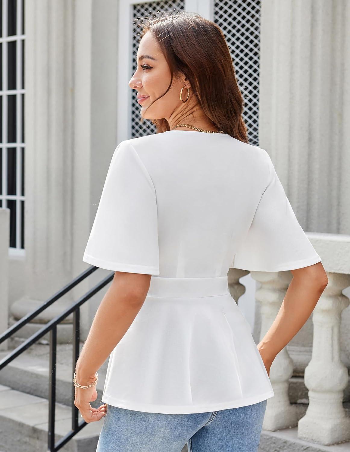 Our clearance section features the best deals on GRACE KARIN 2025 Women’s Elegant V Neck Peplum Tops Short Bell Sleeve Chiffon Shirts Tops Blouse(White) and accessories. Check it out now!