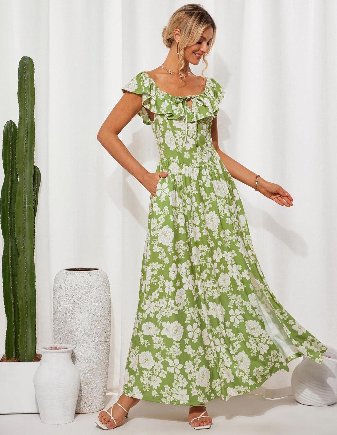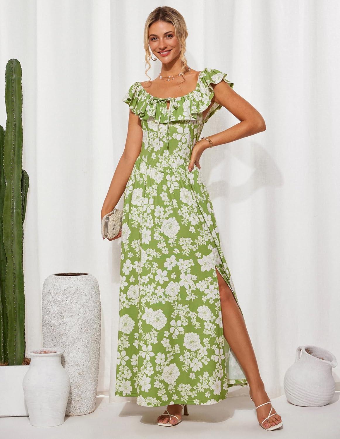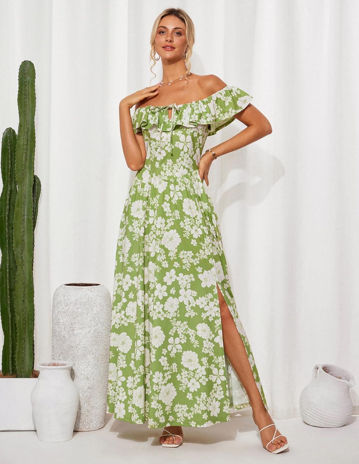 Be the first to review “GRACE KARIN 2025 Womens Maxi Dresses Summer Off Shoulder Floral Dress Ruffle Split Beach Flowy Boho Wedding Guest Dress(Green White)” Cancel reply
