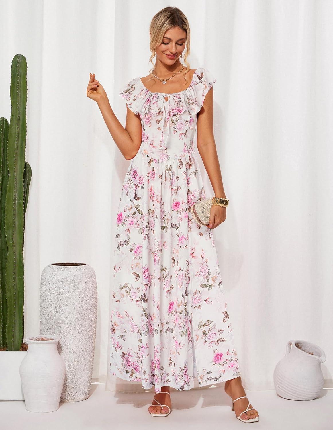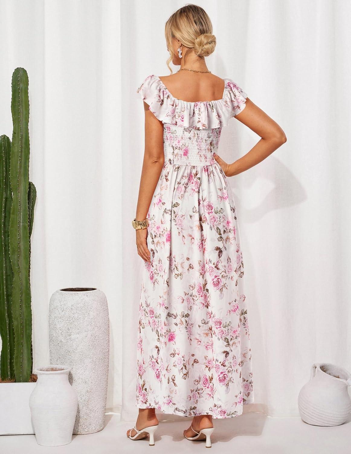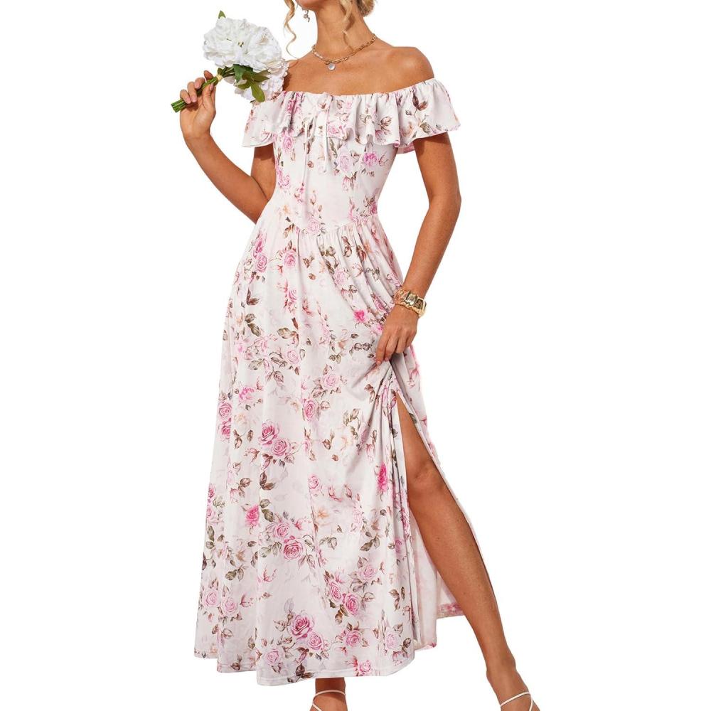 Get the GRACE KARIN 2025 Womens Maxi Dresses Summer Off Shoulder Floral Dress Ruffle Split Beach Flowy Boho Wedding Guest Dress(Light Pink) you’ve been eyeing at a discounted price during our seasonal sale event.