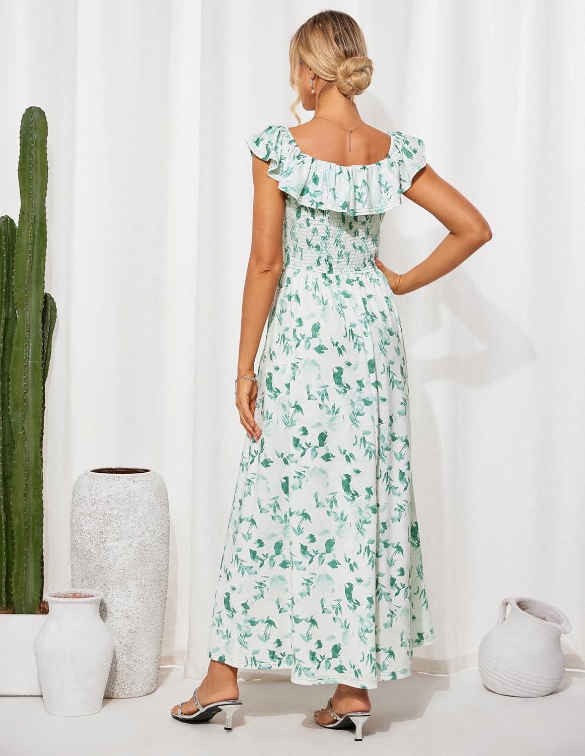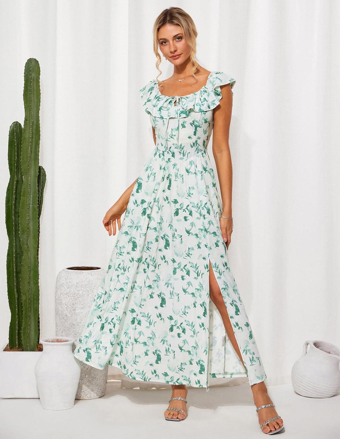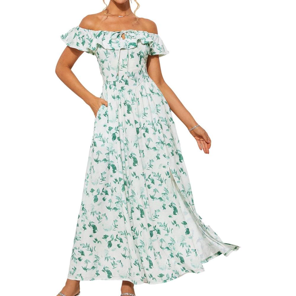 Be the first to review “GRACE KARIN 2025 Womens Maxi Dresses Summer Off Shoulder Floral Dress Ruffle Split Beach Flowy Boho Wedding Guest Dress(White Green)” Cancel reply
