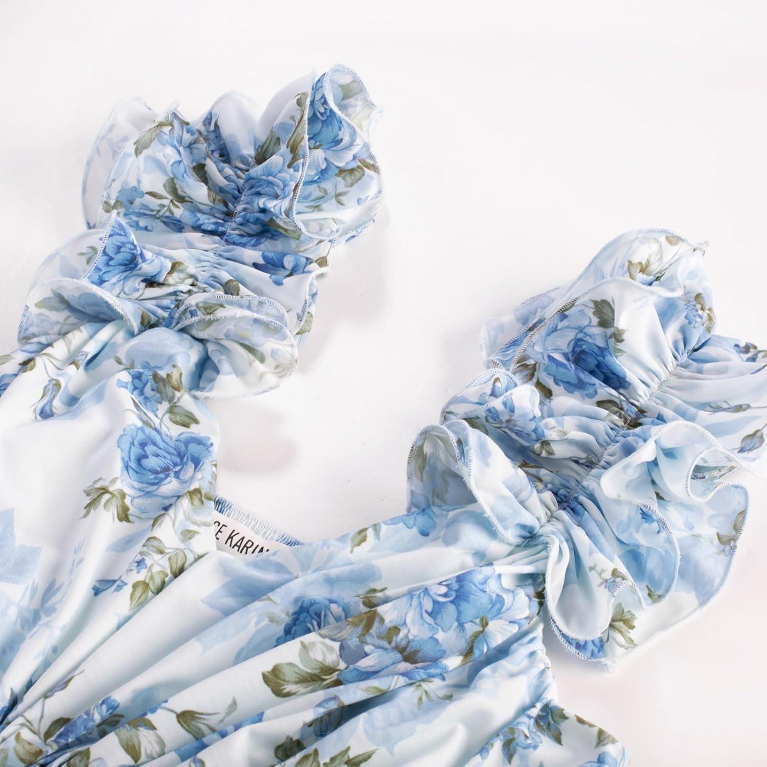 GRACE KARIN 2025 Women's Summer Floral Print Dress Sleeveless Casual Flowy Sundress A Line Ruffle Wedding Guest Outfit(Blue Green)