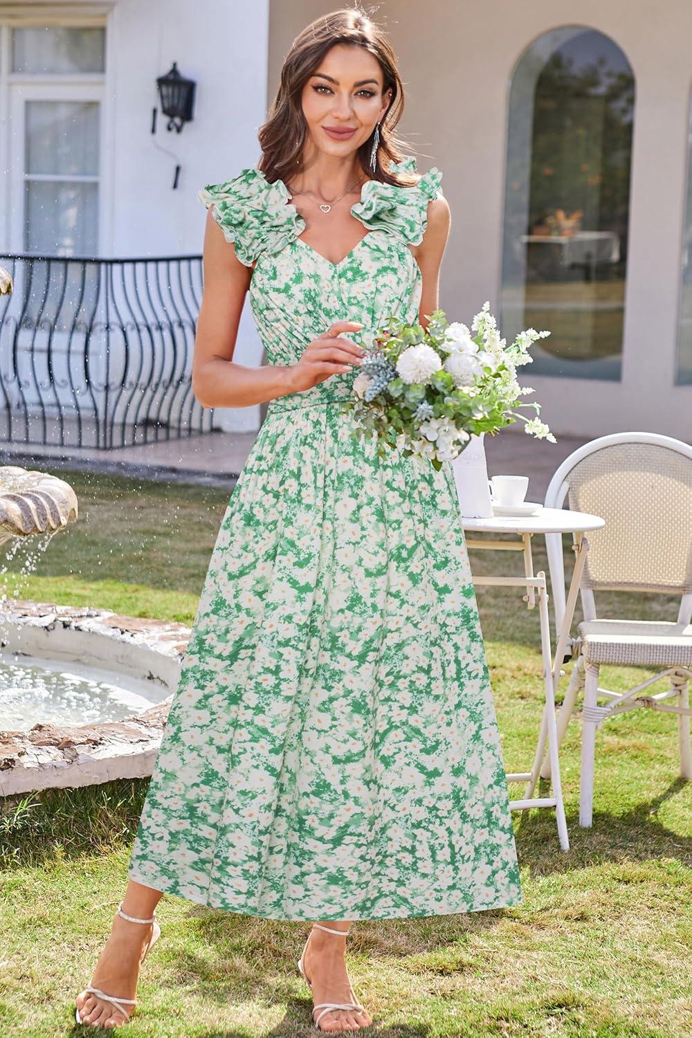 Be the first to review “GRACE KARIN 2025 Women’s Summer Floral Print Dress Sleeveless Casual Flowy Sundress A Line Ruffle Wedding Guest Outfit(Green White Floral)” Cancel reply