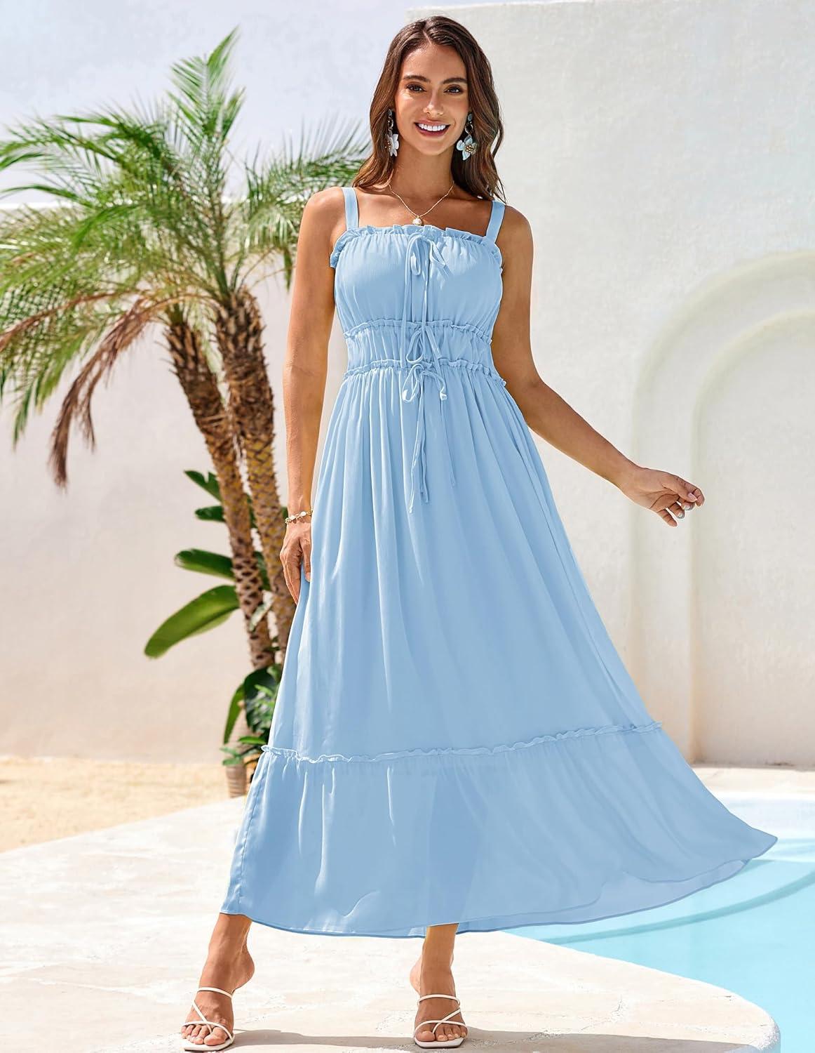 Save big on GRACE KARIN 2025 Womens Summer Flowy A-line Boho Dresses Spaghetti Strap Long Beach Sundress Smocked Maxi Dress with Pockets(Light Blue) during our summer blowout sale. Limited quantities available.