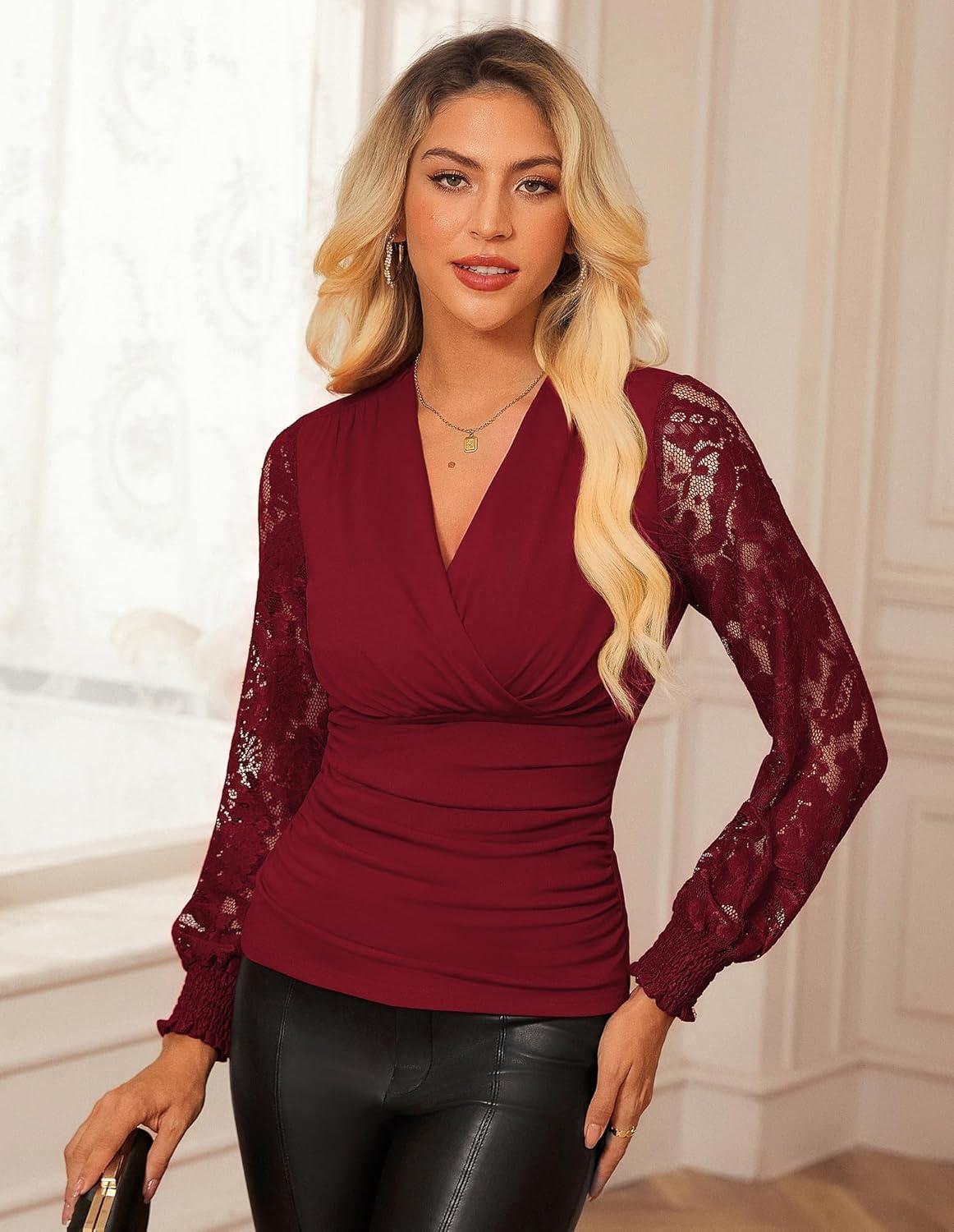 Don’t miss out on our limited-time offer: buy GRACE KARIN 2025 Womens Tops Wrap V Neck Shirt Lace Long Sleeve Blouses Dressy Casual Ruched Top Fall Fashion Outfits(Burgundy), get a free {accessory}!