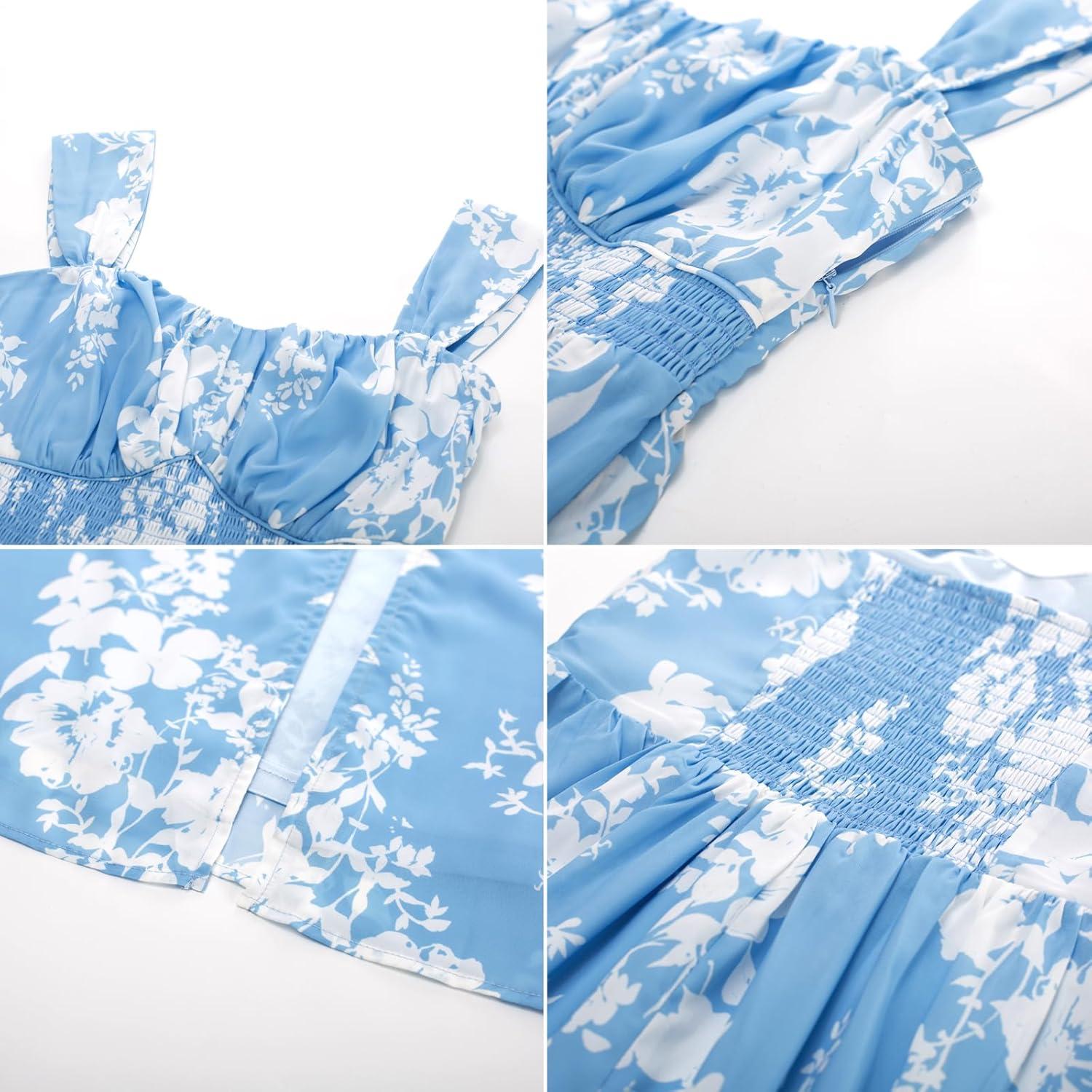 image:imageGRACE KARIN 2026 Womens Summer Floral Wedding Guest DressBeach Flowy A Line Maxi Off Shoulder Bridesmaid DressesBlue White