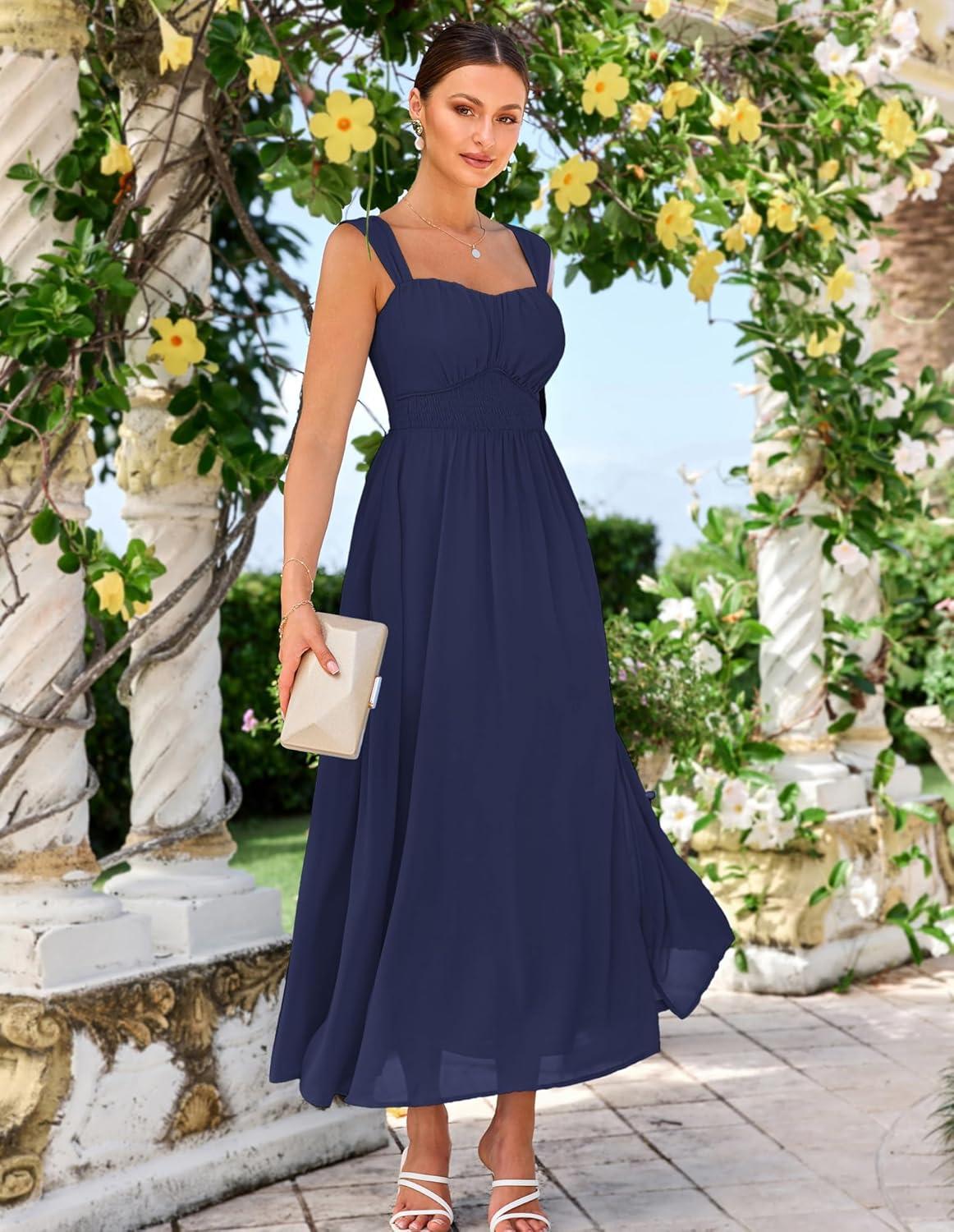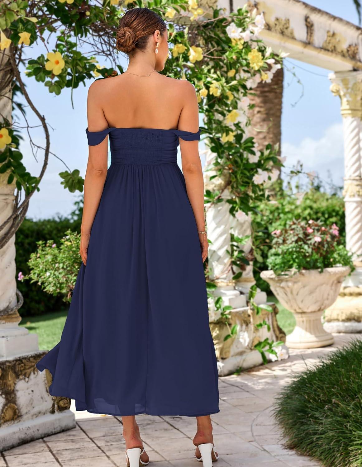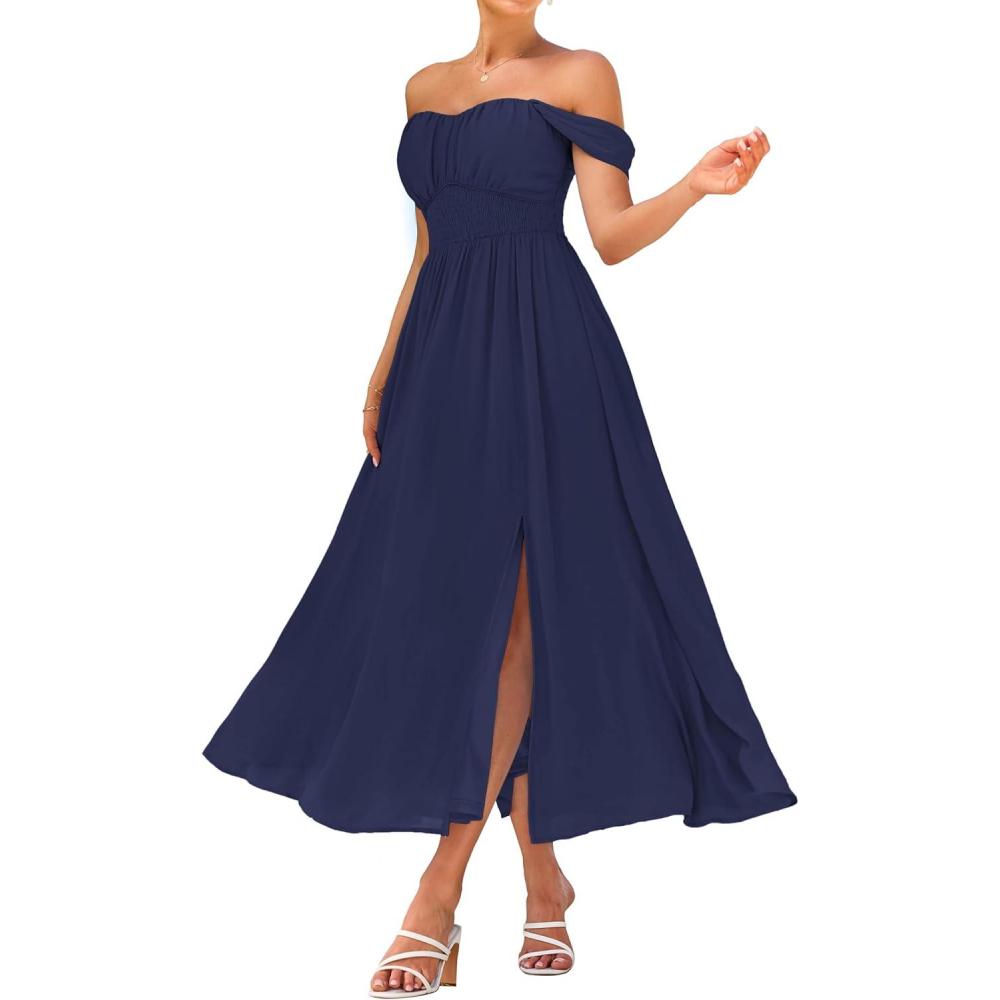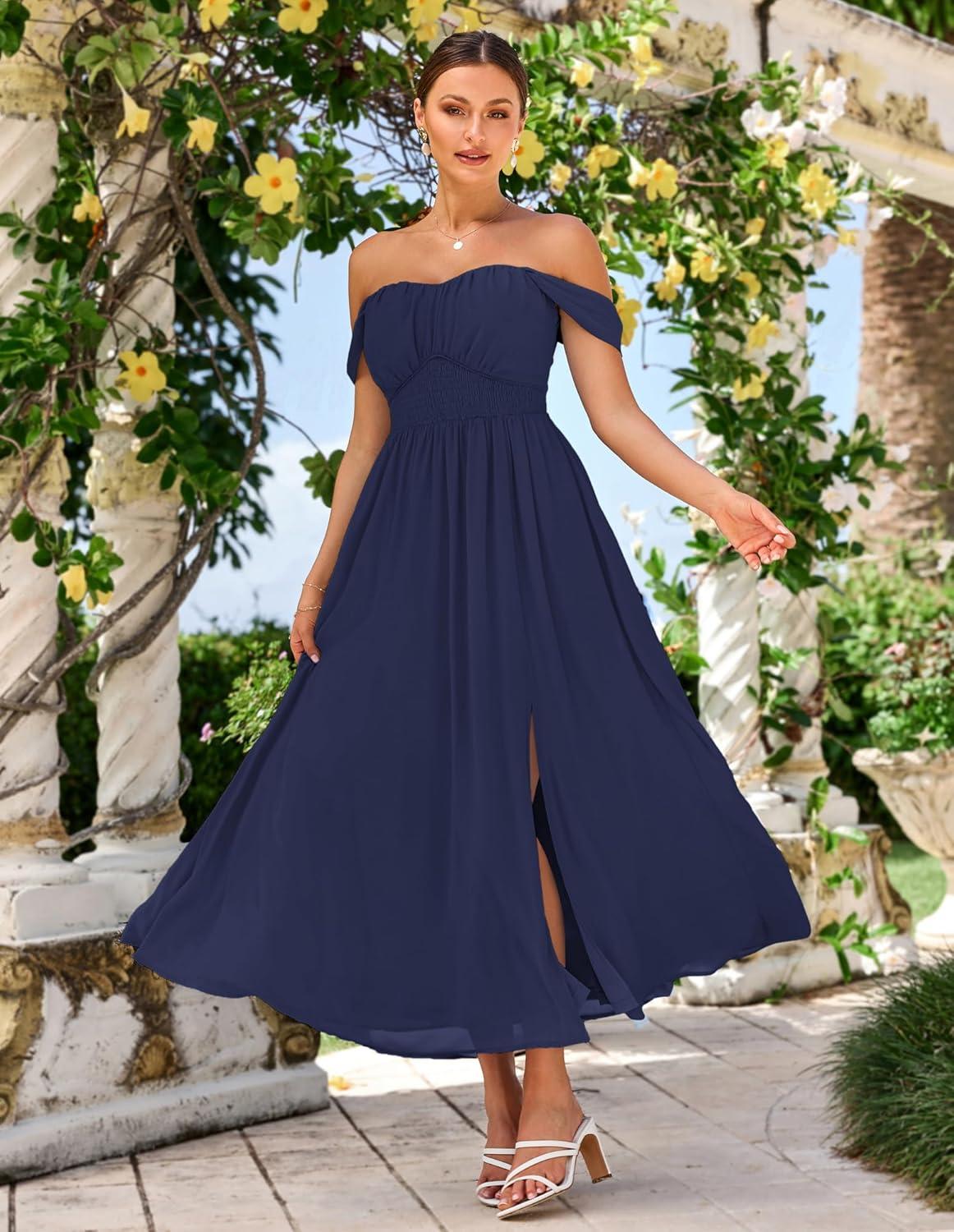 image:imageGRACE KARIN 2026 Womens Summer Floral Wedding Guest DressBeach Flowy A Line Maxi Off Shoulder Bridesmaid DressesNavy Blue