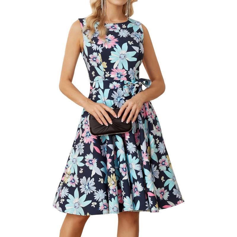 Be the first to review “GRACE KARIN Boatneck Sleeveless Vintage Tea Dress with Belt(Cl033-black-blue (95%polyester+5%spandex))”