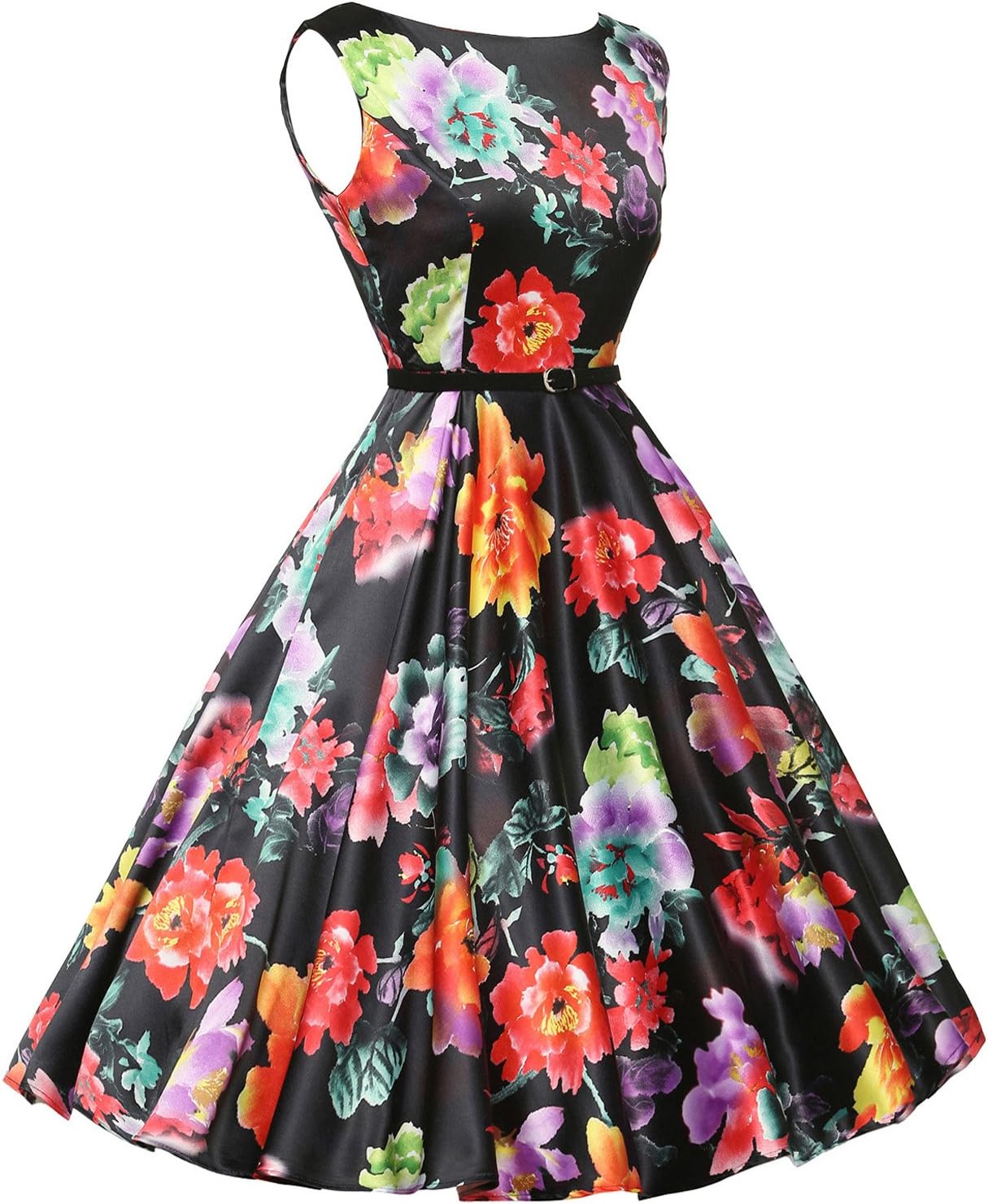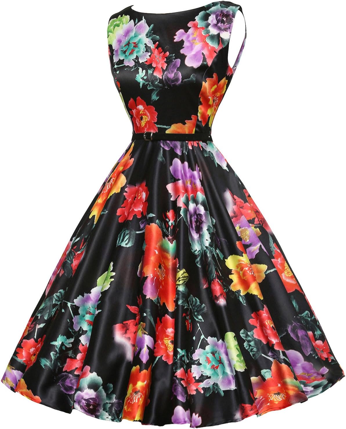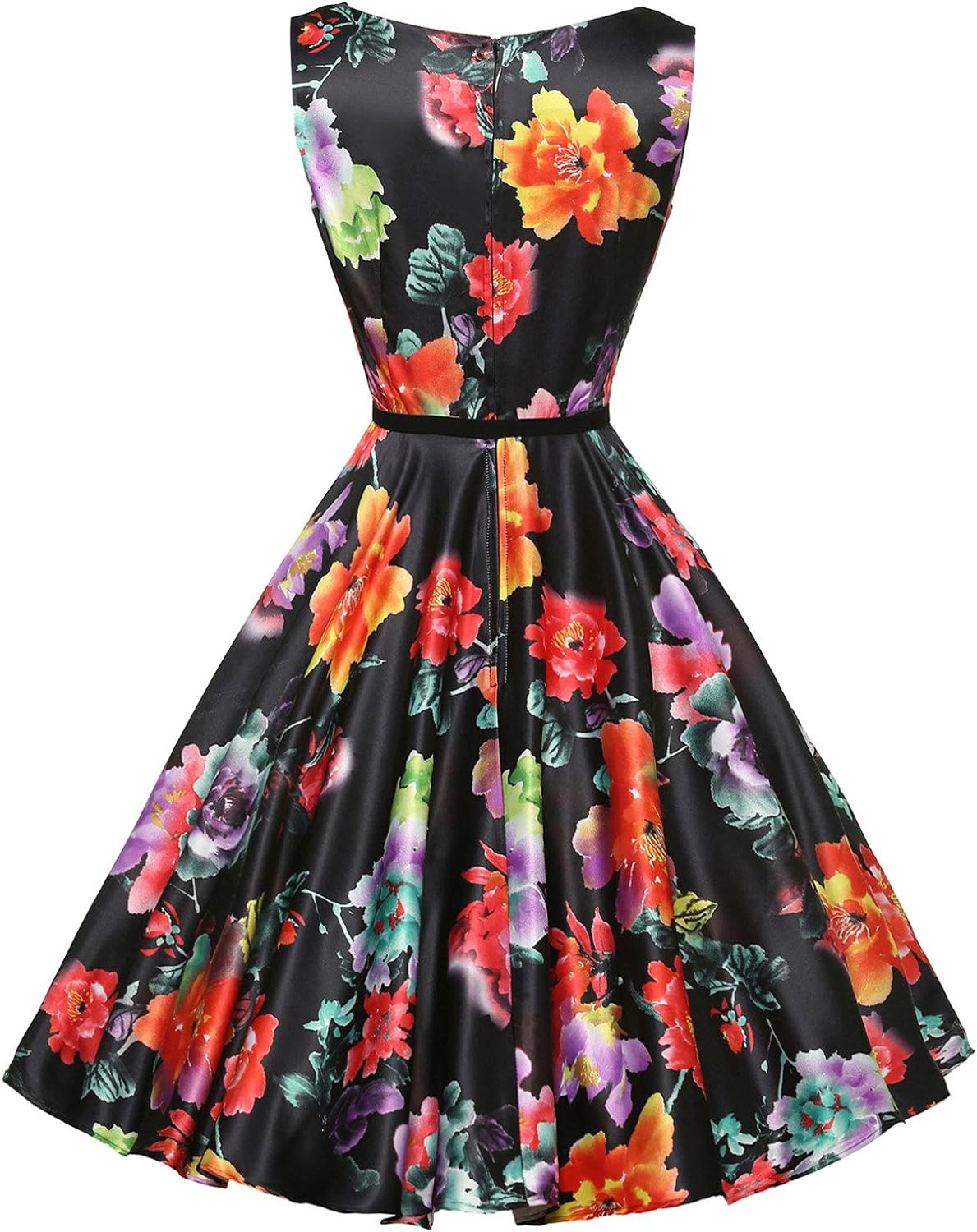 GRACE KARIN Boatneck Sleeveless Vintage Tea Dress with Belt(Floral-49)