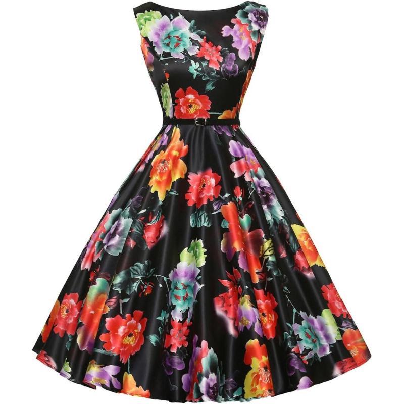 GRACE KARIN Boatneck Sleeveless Vintage Tea Dress with BeltFloral49