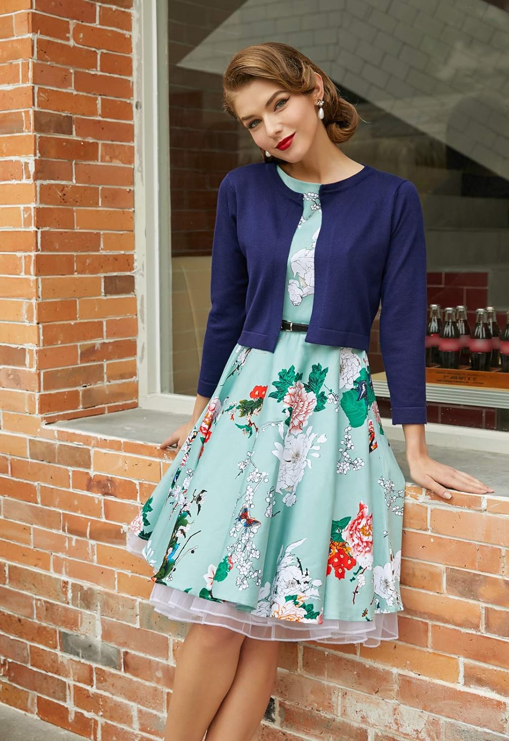 GRACE KARIN Boatneck Sleeveless Vintage Tea Dress with Belt(Floral-49)
