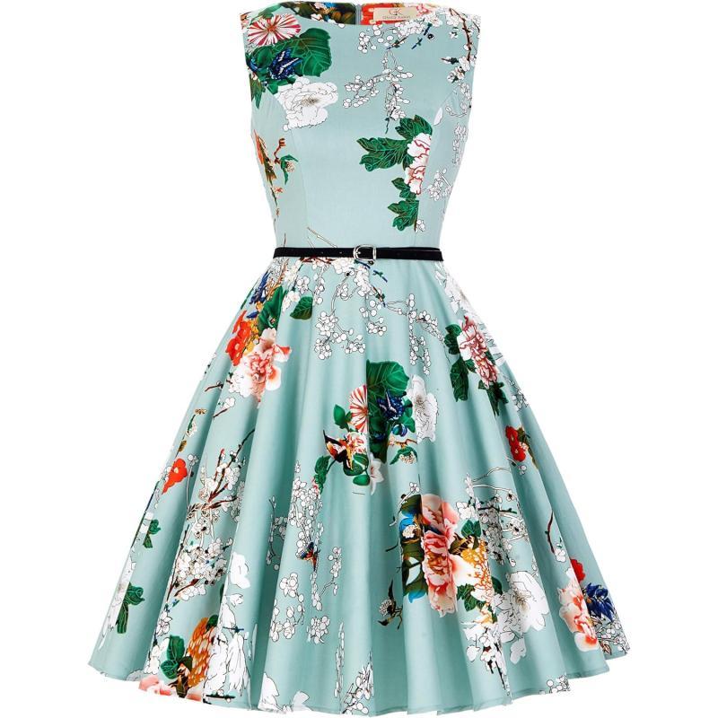 GRACE KARIN Boatneck Sleeveless Vintage Tea Dress with BeltFloral22