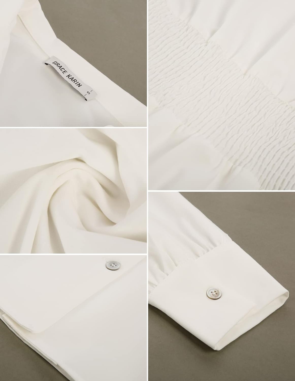 GRACE KARIN Button Down Shirts for Women Peplum Tops Long Sleeve Work Blouse Collared Shirt Dressy Top(White)
