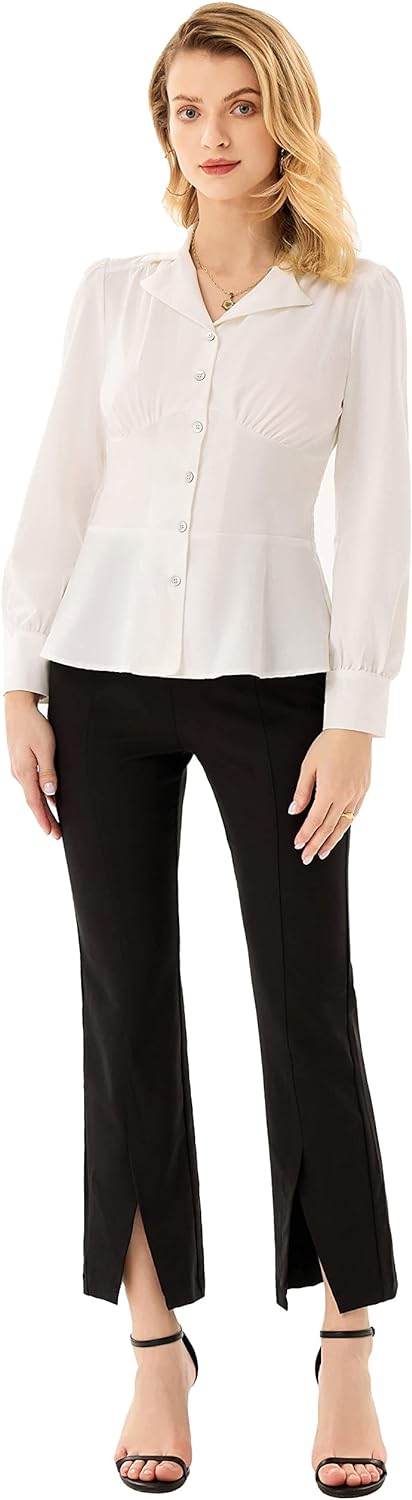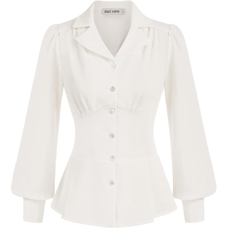 GRACE KARIN Button Down Shirts for Women Peplum Tops Long Sleeve Work Blouse Collared Shirt Dressy TopWhite
