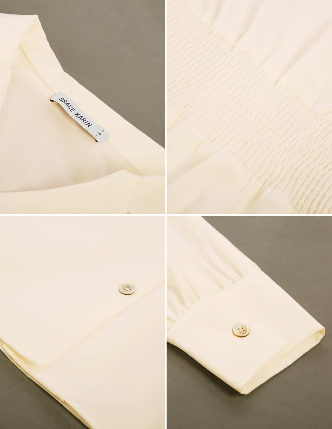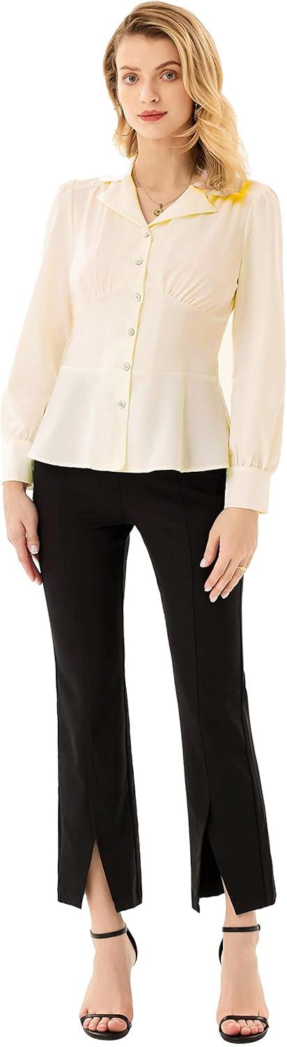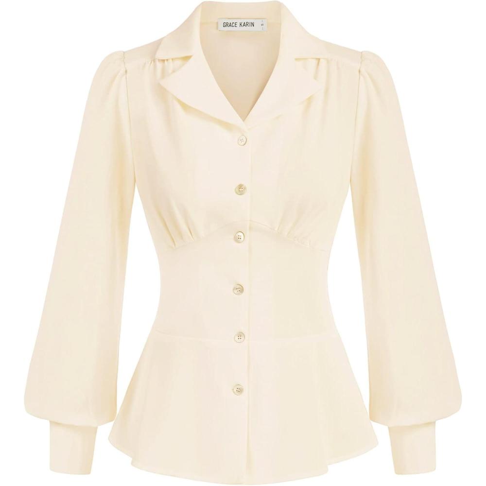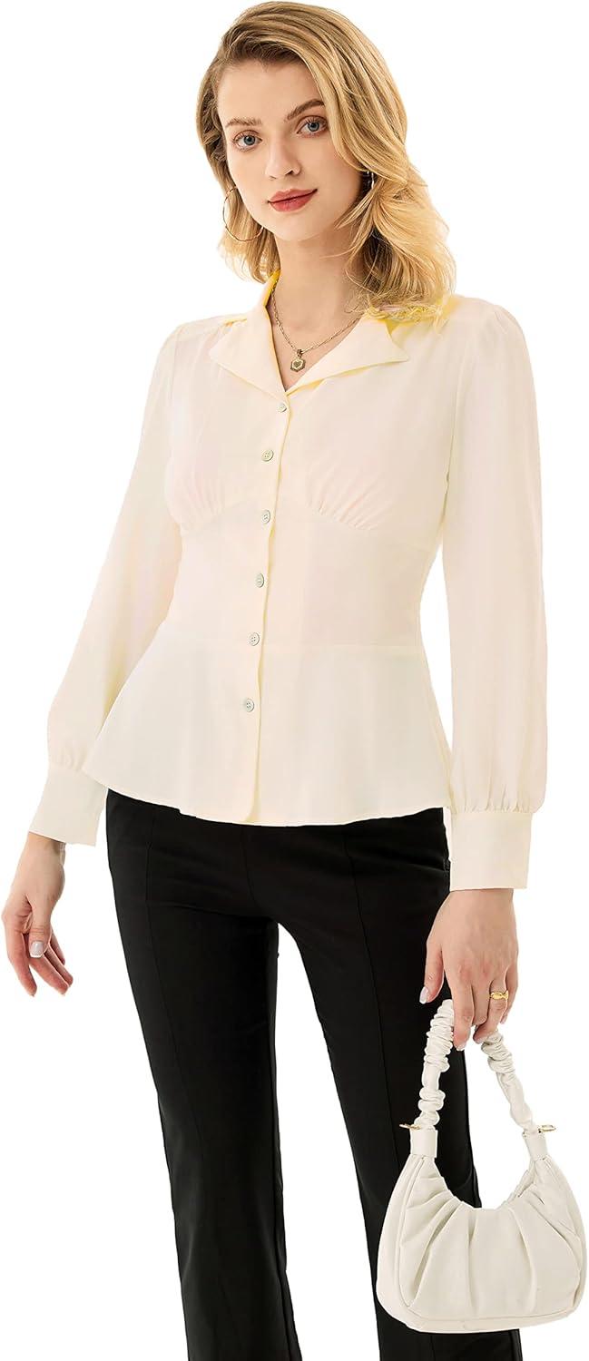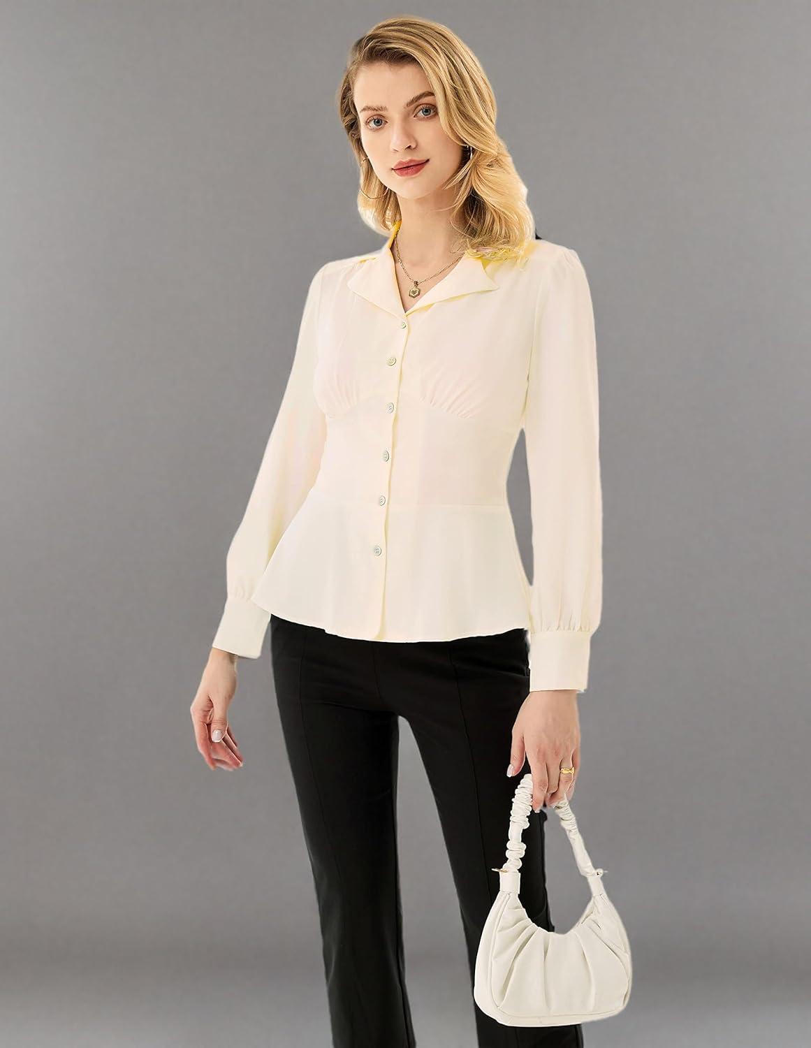 GRACE KARIN Button Down Shirts for Women Summer Peplum Tops Long Sleeve Work Blouse Collared Shirt Dressy Top(Ivory)