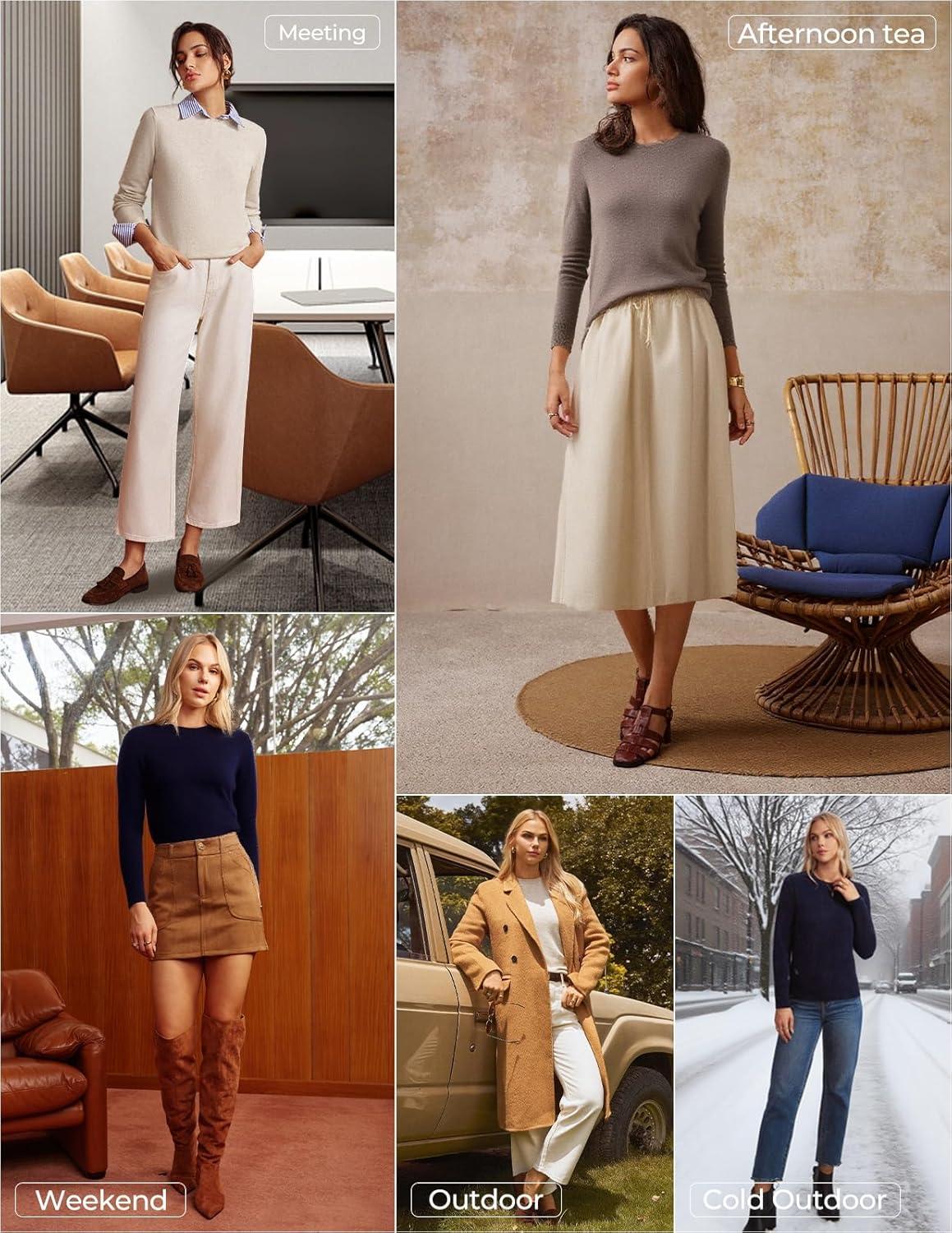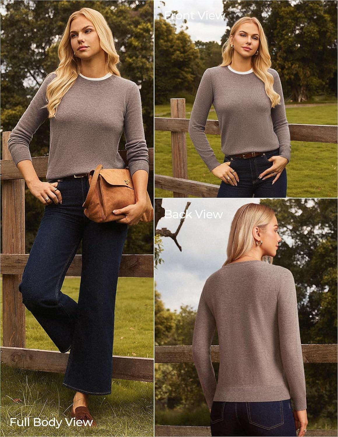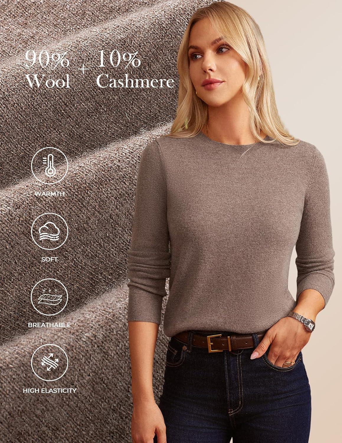 imageGRACE KARIN Cashmere Sweaters for Women Merino Wool Long Sleeve Sweater Casual Fall Crew Neck Sweater with Socks 2025Coffee