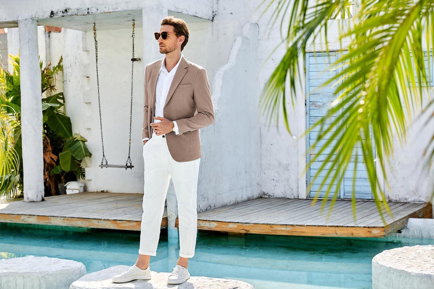 GRACE KARIN Casual Blazer for Men Slim Fit Mens Suit Jacket Lightweight Sport Coat Two Button(Light Grey)