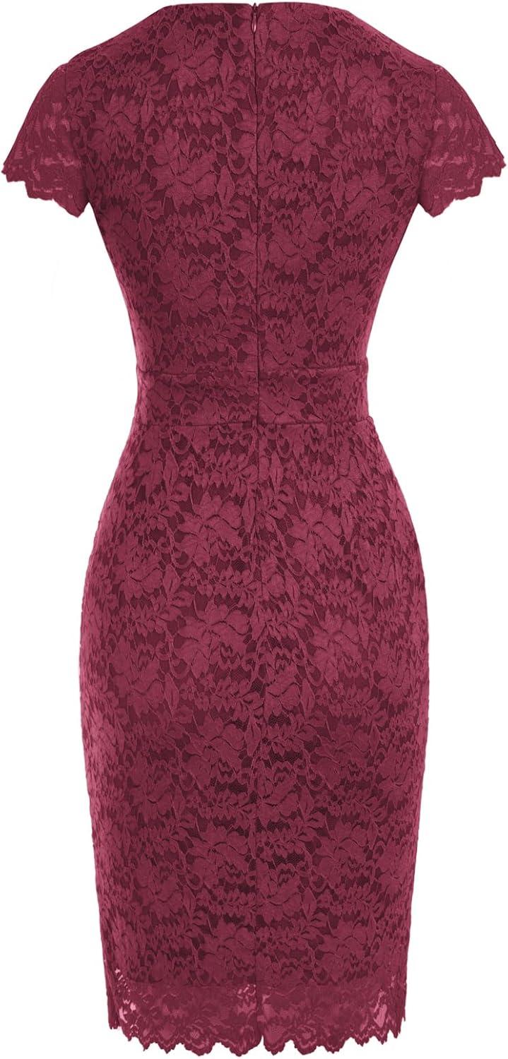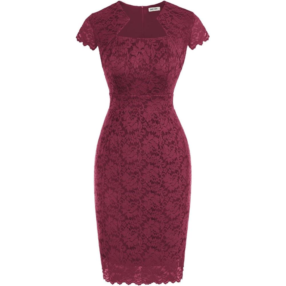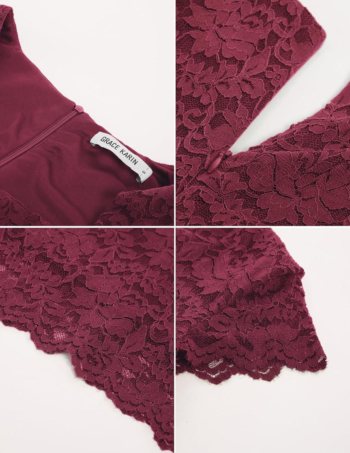 GRACE KARIN Cocktail Dress for Women Cap Sleeve Lace Dress for Wedding Guest Business Casual Dresses(Burgundy)