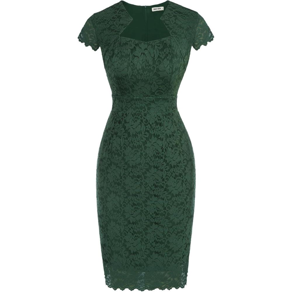 GRACE KARIN Cocktail Dress for Women Cap Sleeve Lace Dress for Wedding Guest Business Casual Dresses(Dark Green)