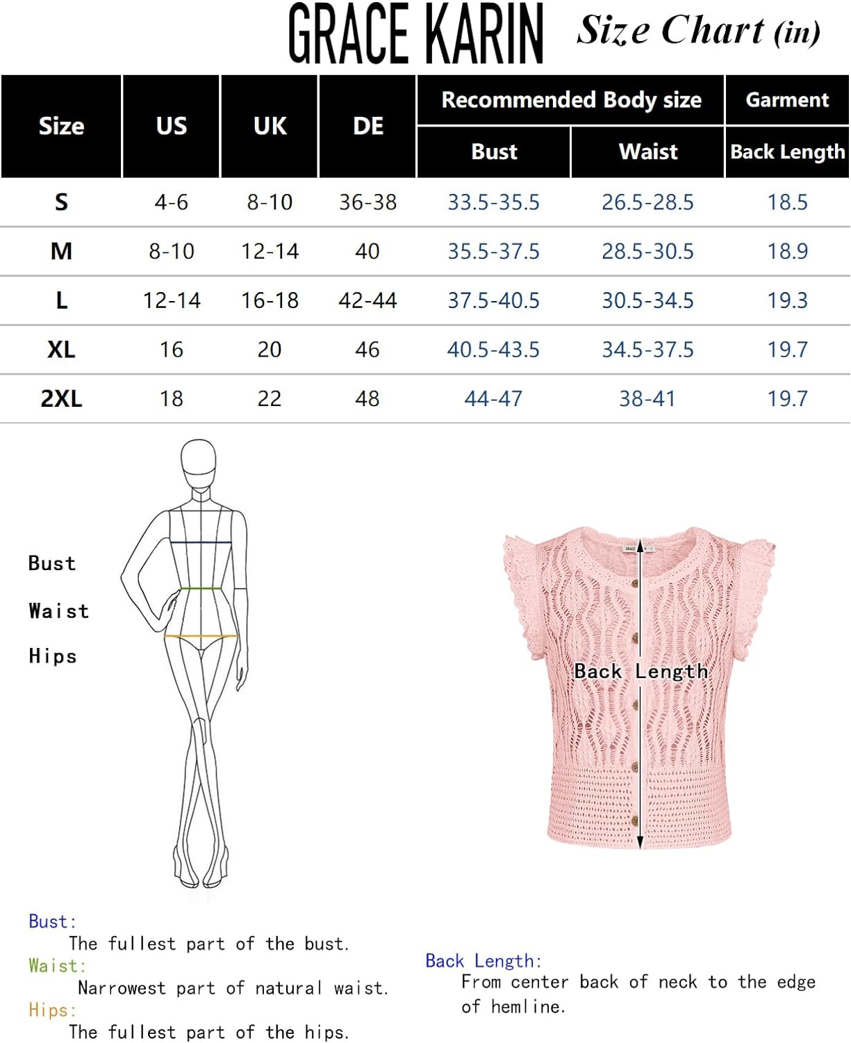 GRACE KARIN Crochet Cropped Cardigan Sweater Vest Ruffle Sleeve Lace Button Up Lightweight Bolero Shrugs for Dress Top 2024White