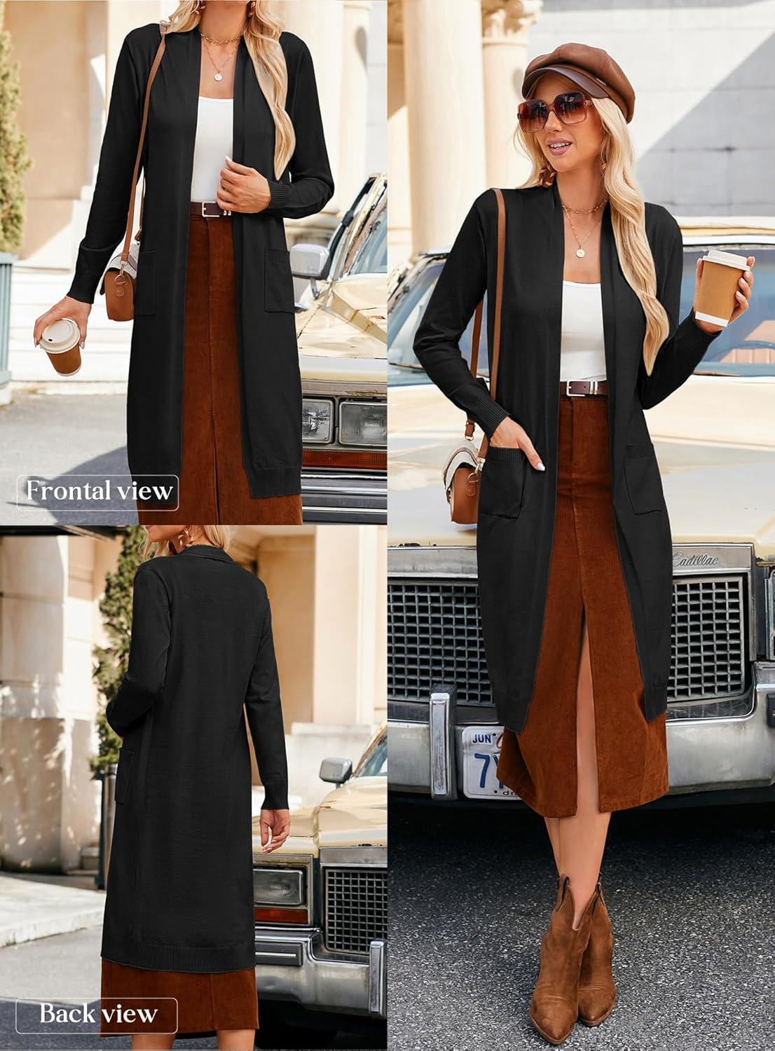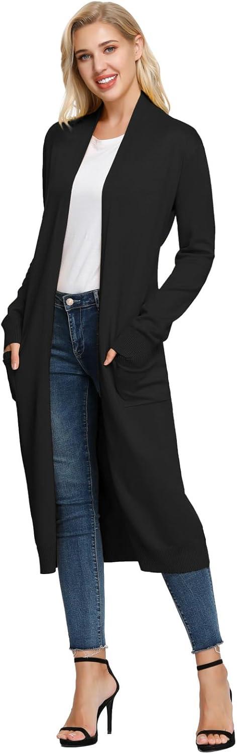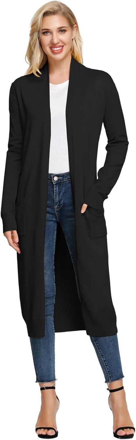 GRACE KARIN Essential Solid Open Front Maxi Long Knitted Cardigan Sweater for Women(1-black)