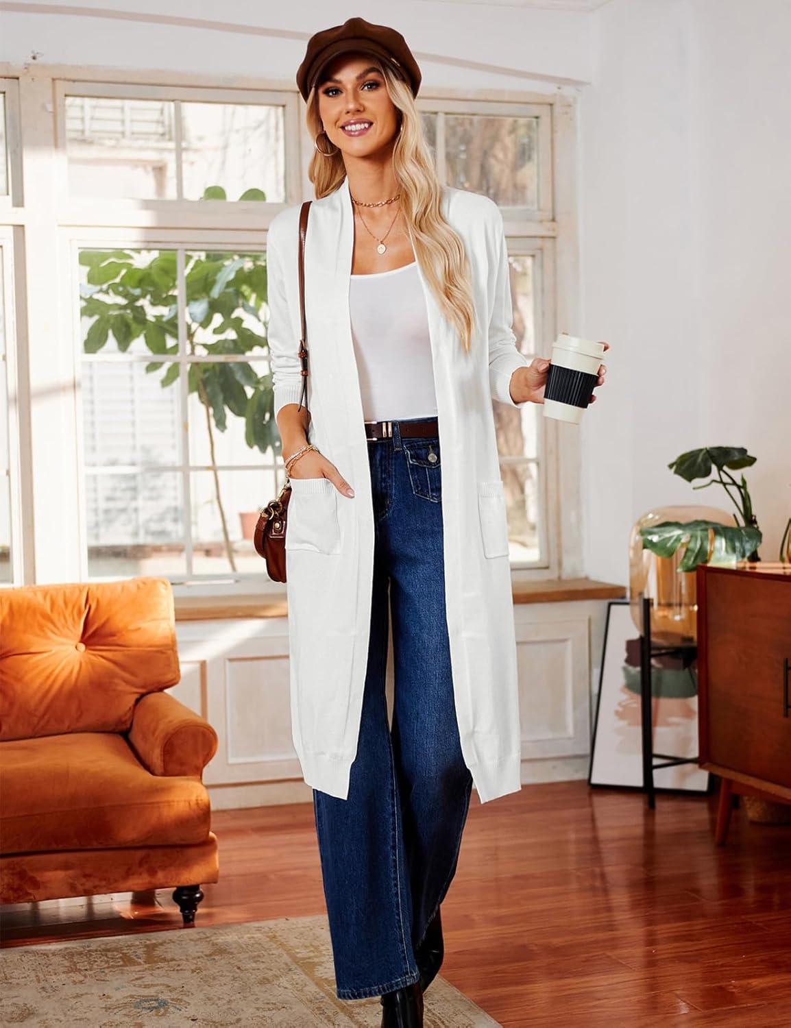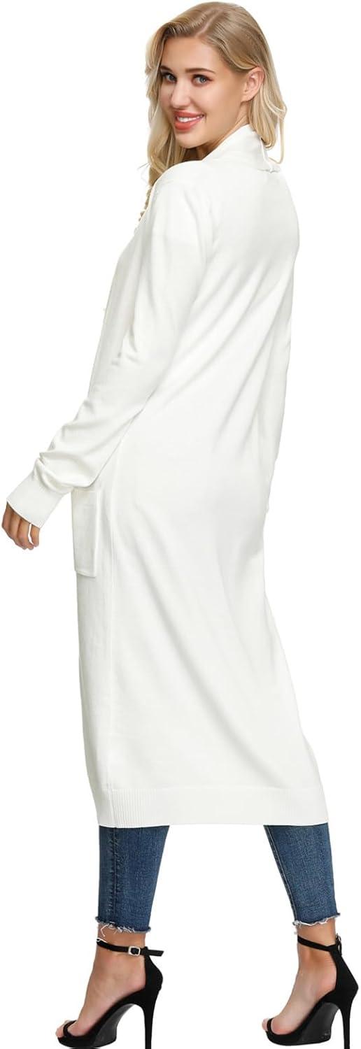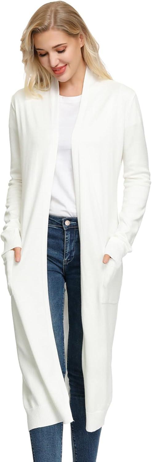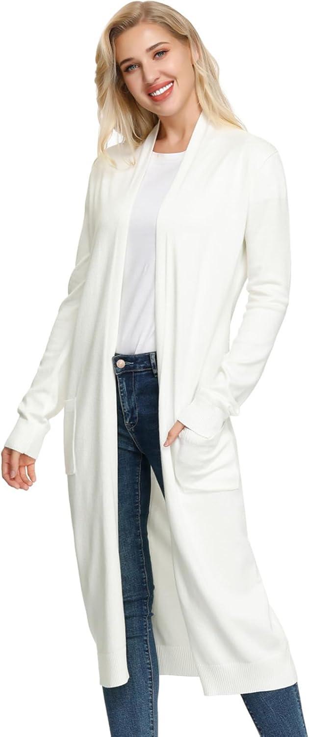 GRACE KARIN Essential Solid Open Front Maxi Long Knitted Cardigan Sweater for Women(6-ivory)