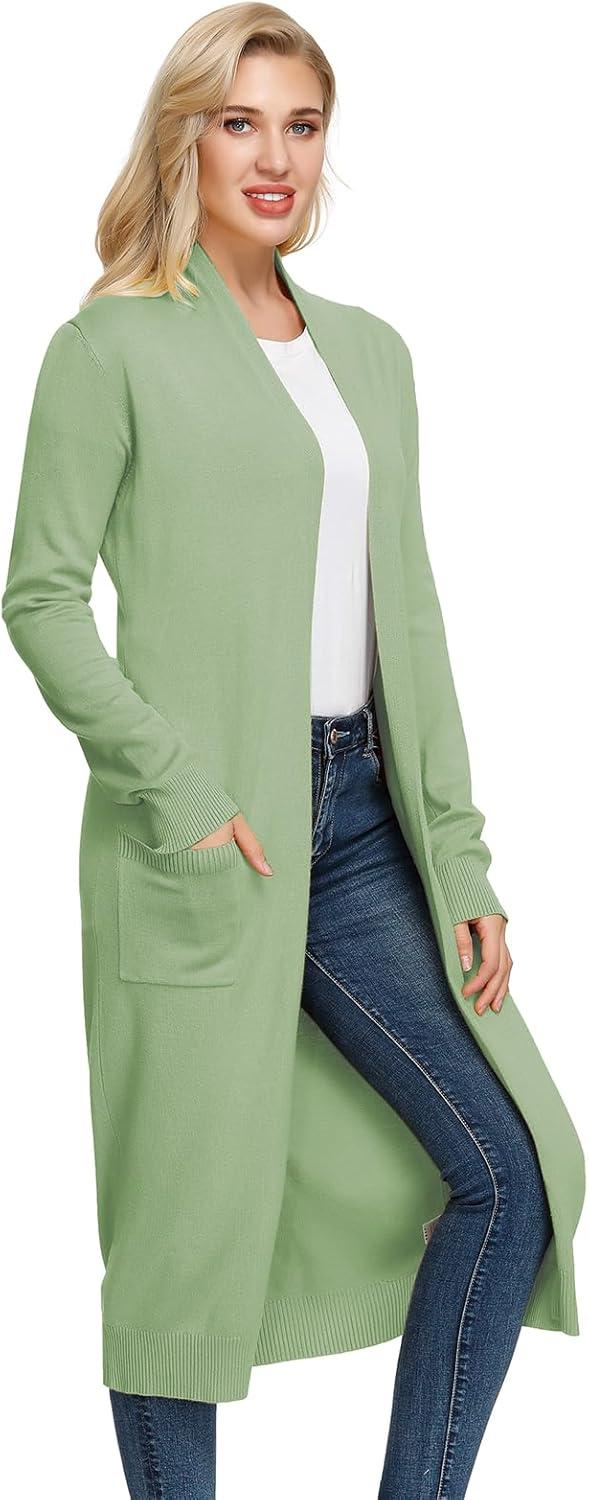 Save big on GRACE KARIN Essential Solid Open Front Maxi Long Knitted Cardigan Sweater for Women(Light Green) and accessories during our BOGO sale. Buy one, get one 50% off!