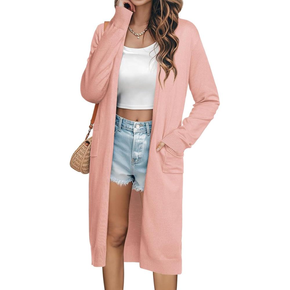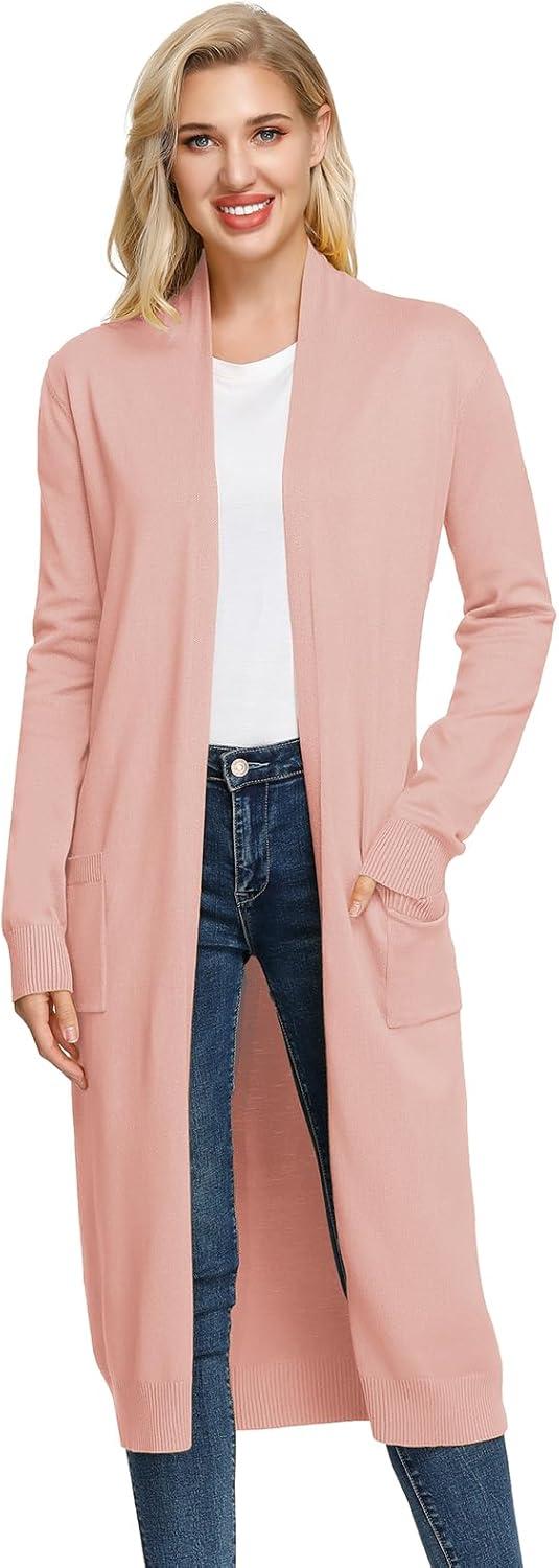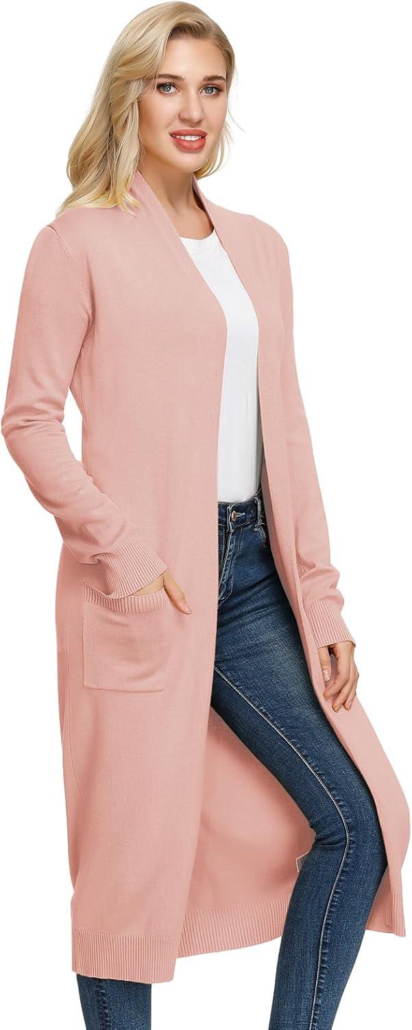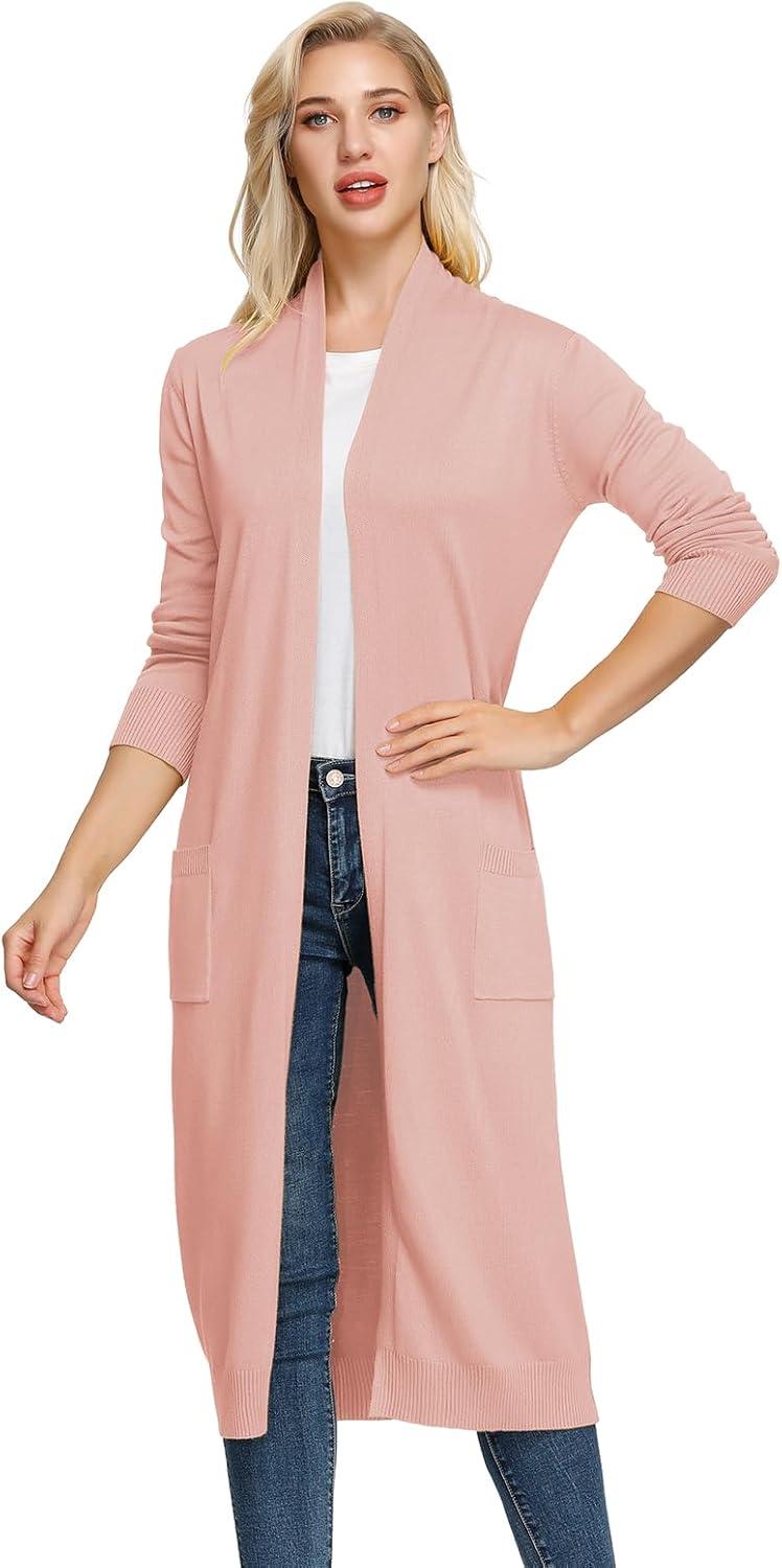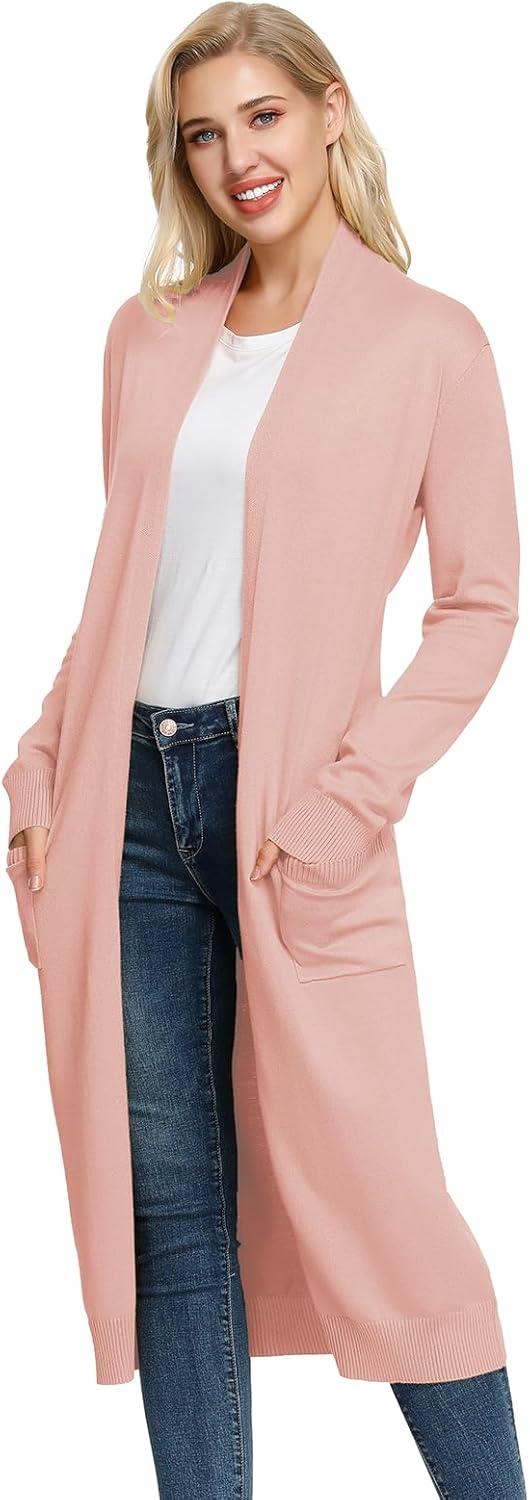 GRACE KARIN Essential Solid Open Front Maxi Long Knitted Cardigan Sweater for Women(Light Pink)