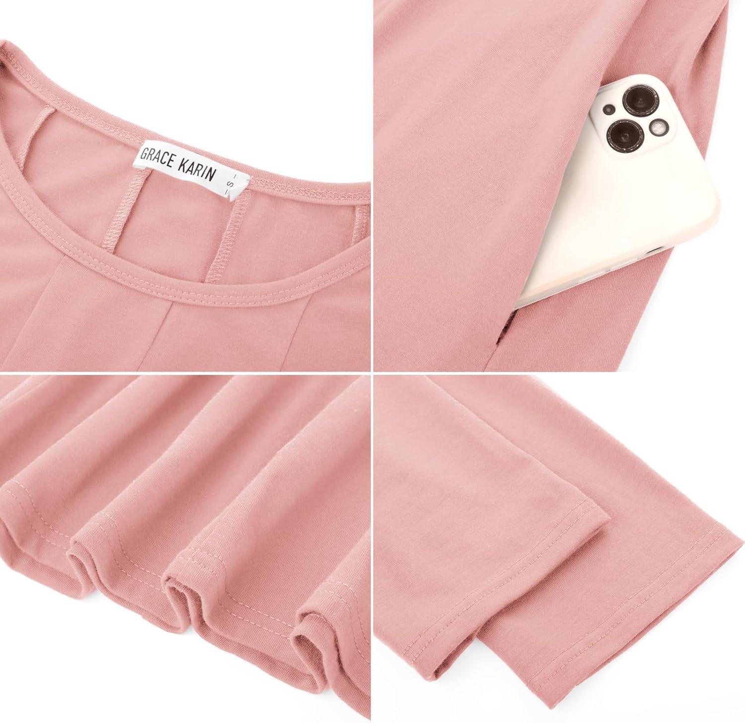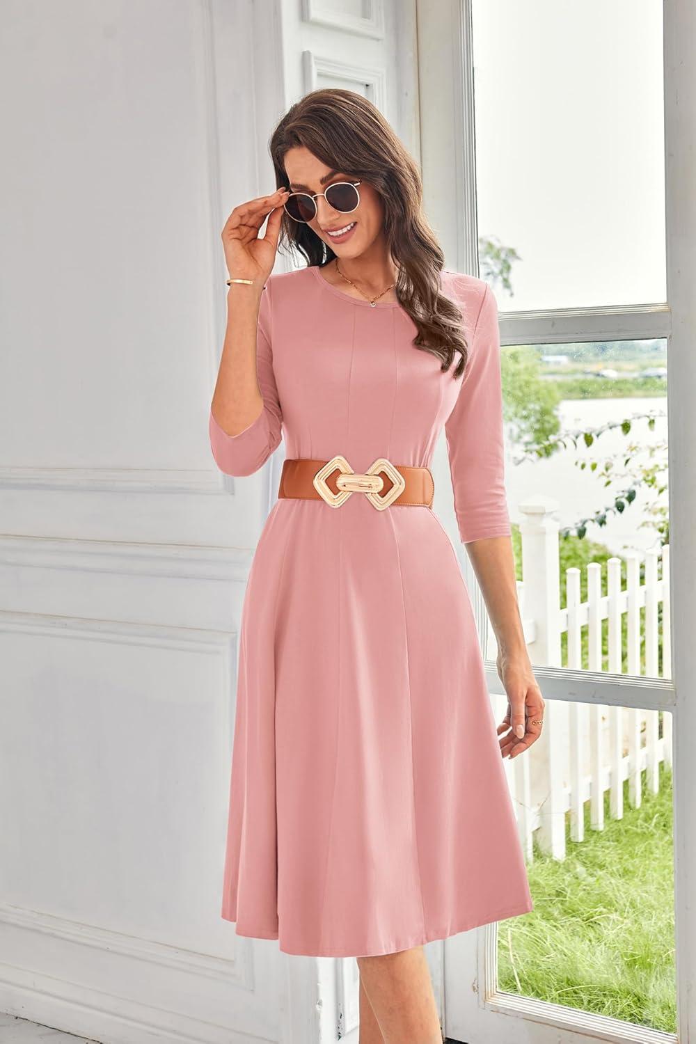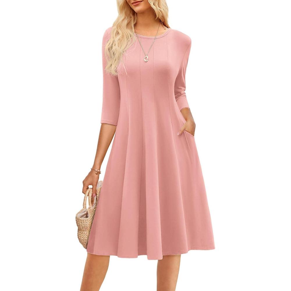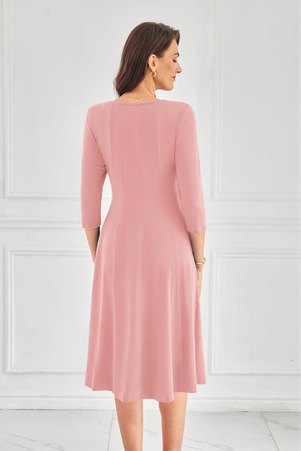GRACE KARIN Fall Dresses for Women 2025 Casual 3/4 Sleeve Dress A Line Fit and Flare Midi Dress with Pockets(Dusty Pink)